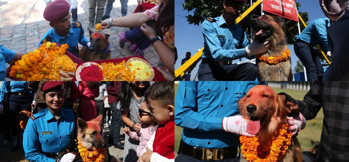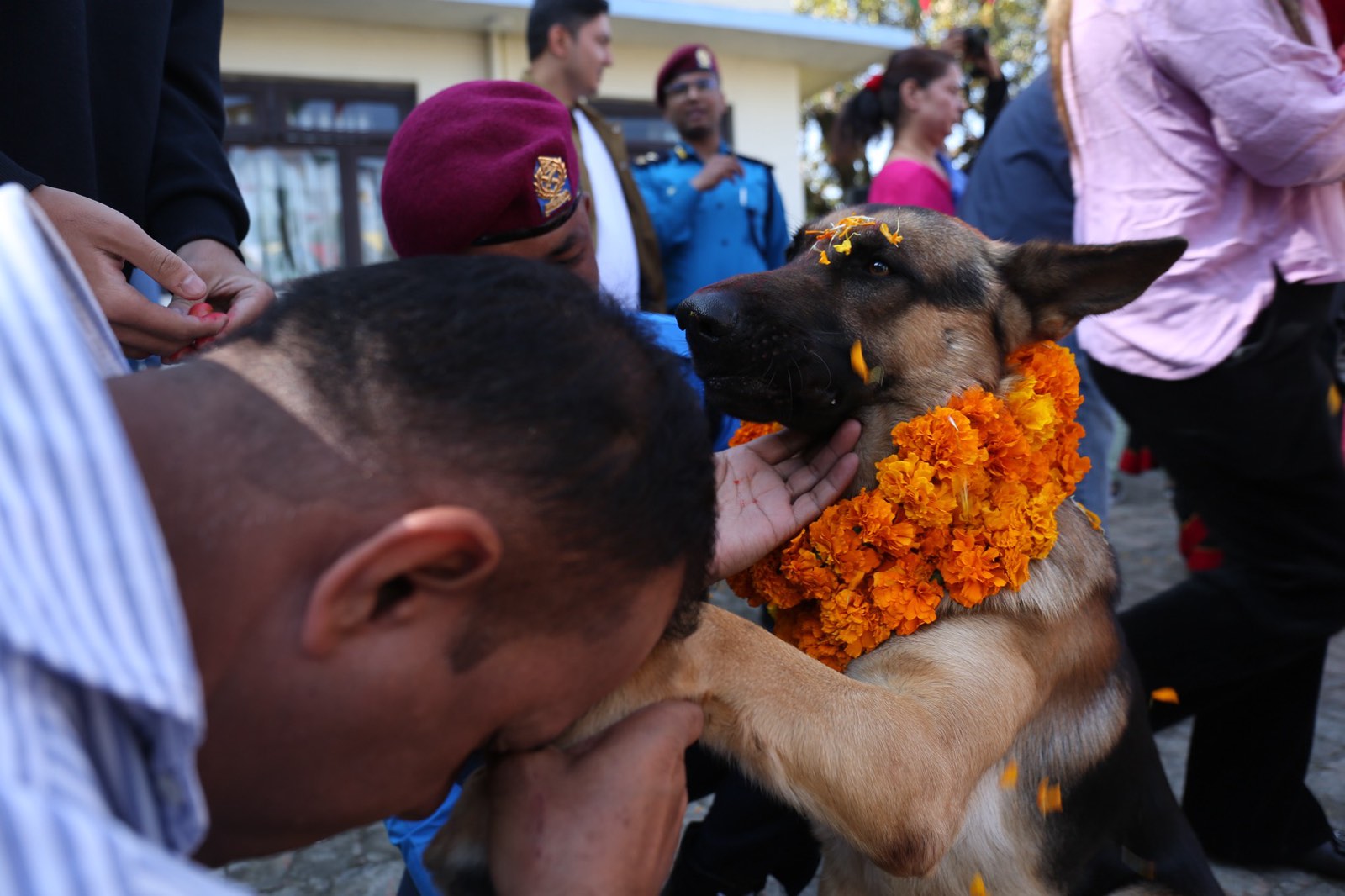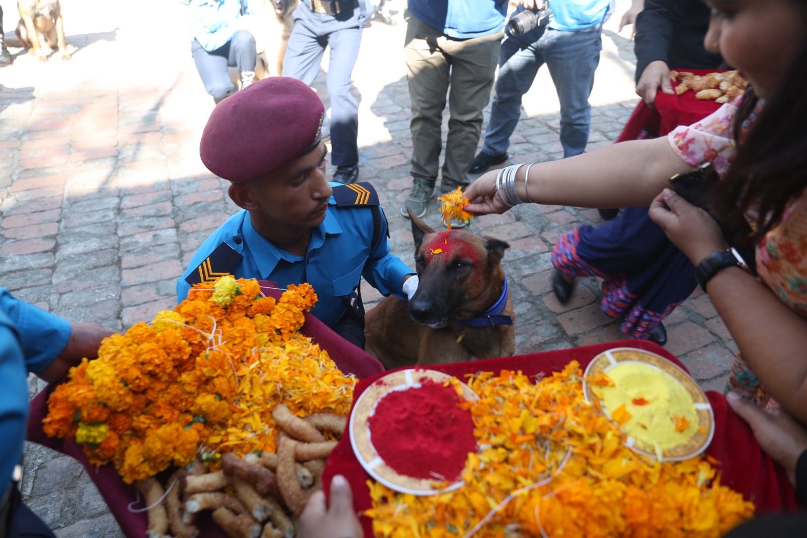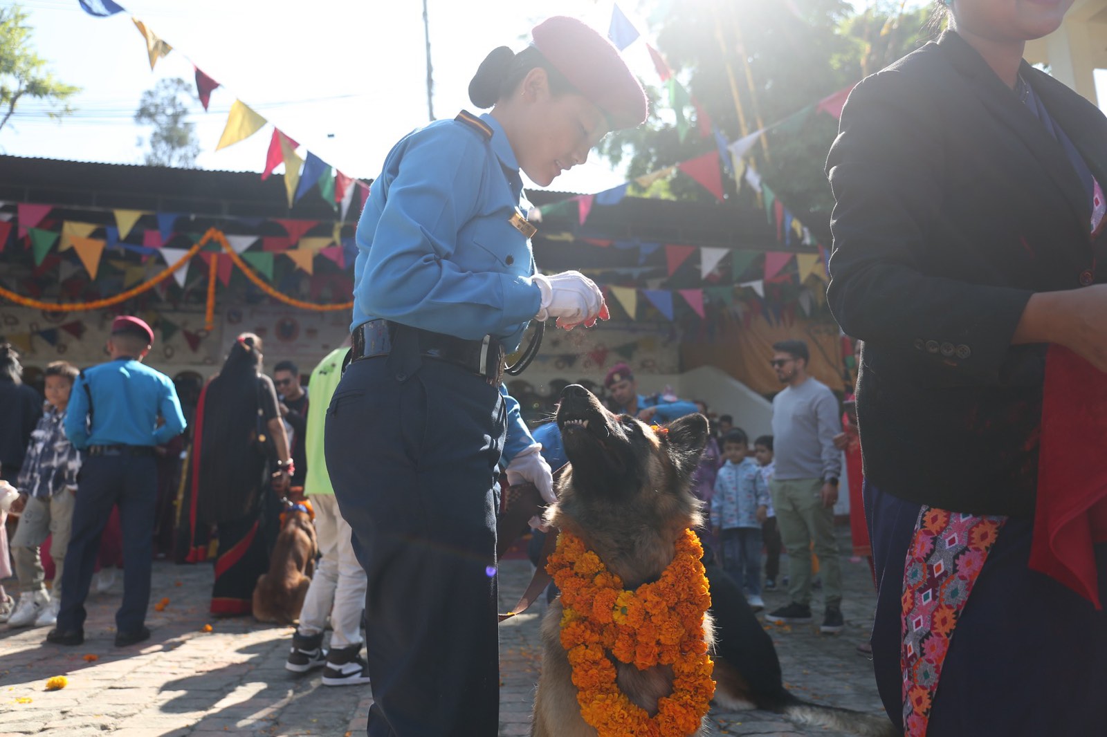 नेपाल प्रहरीले केन्द्रीय प्रहरी कुकुर तालिम केन्द्रमा कुकुर तिहारको अवसरमा कुकुरको पूजा गरी मनाइएको छ। हिन्दु परम्परा अनुसार कात्तिक कृष्ण चर्तुदशीका दिन भैरवको बहान कुकुरको पूजा गर्ने गरिन्छ। मानिसको निकट साथीको रूपमा मानिने कुकुर आज्ञाकारी र रक्षक भएकाले यसको पूजा गर्ने प्रचलन रहेको छ।