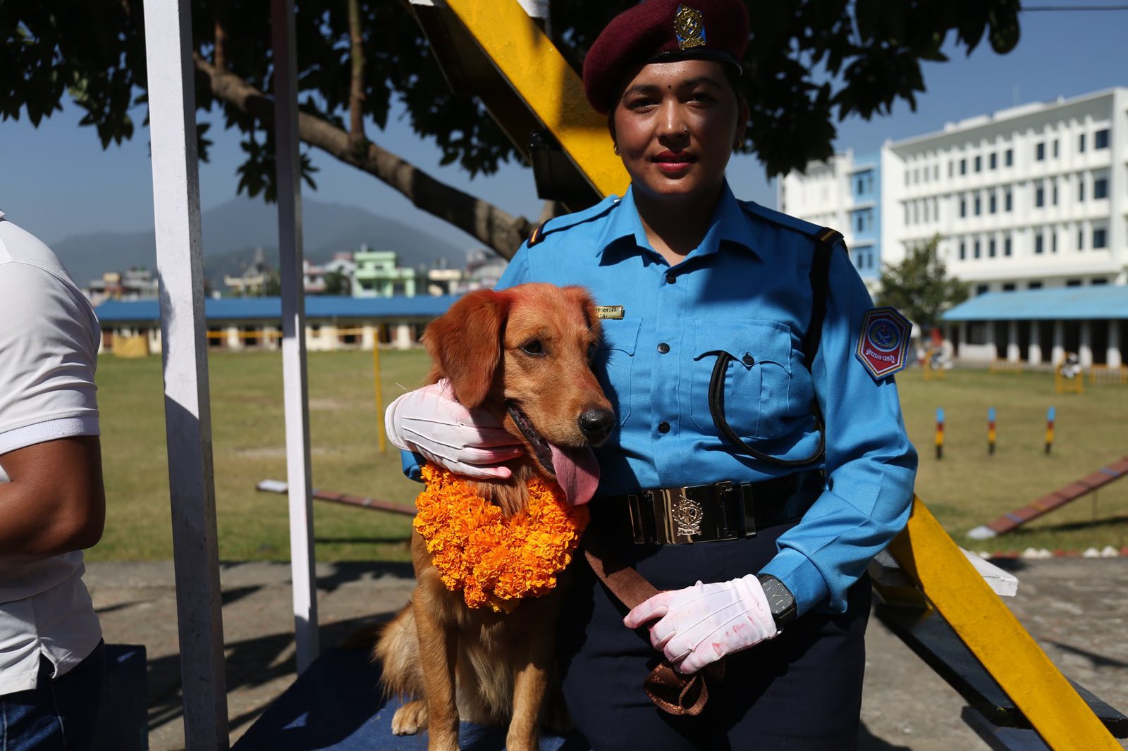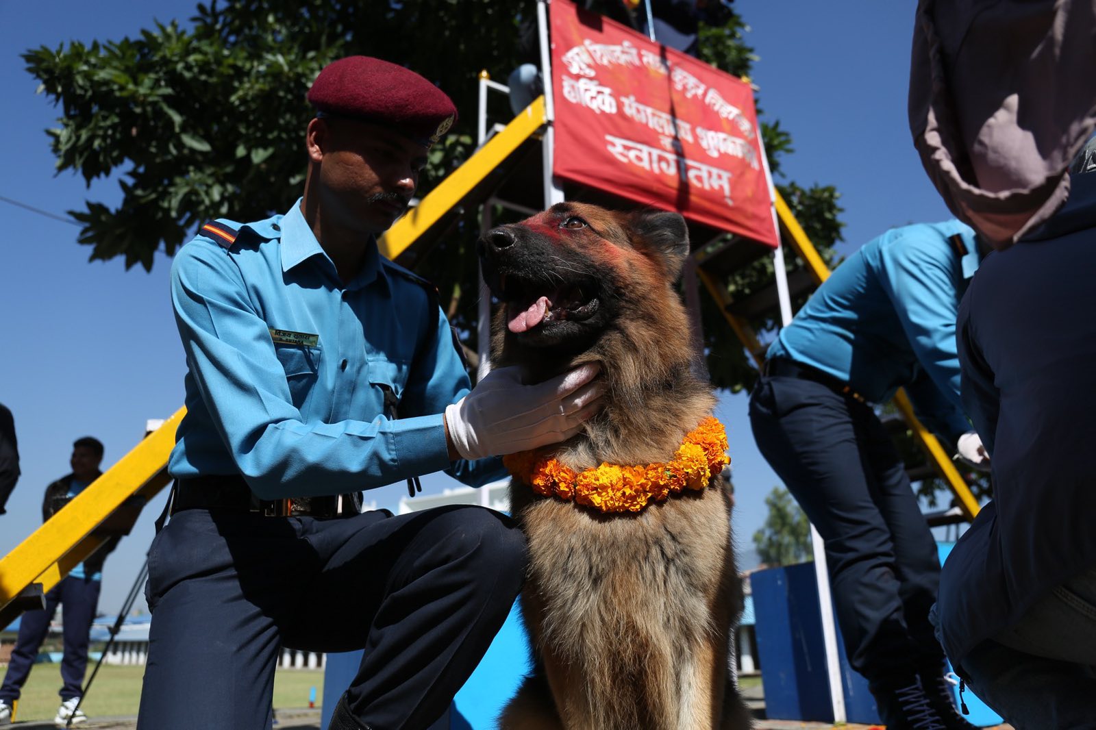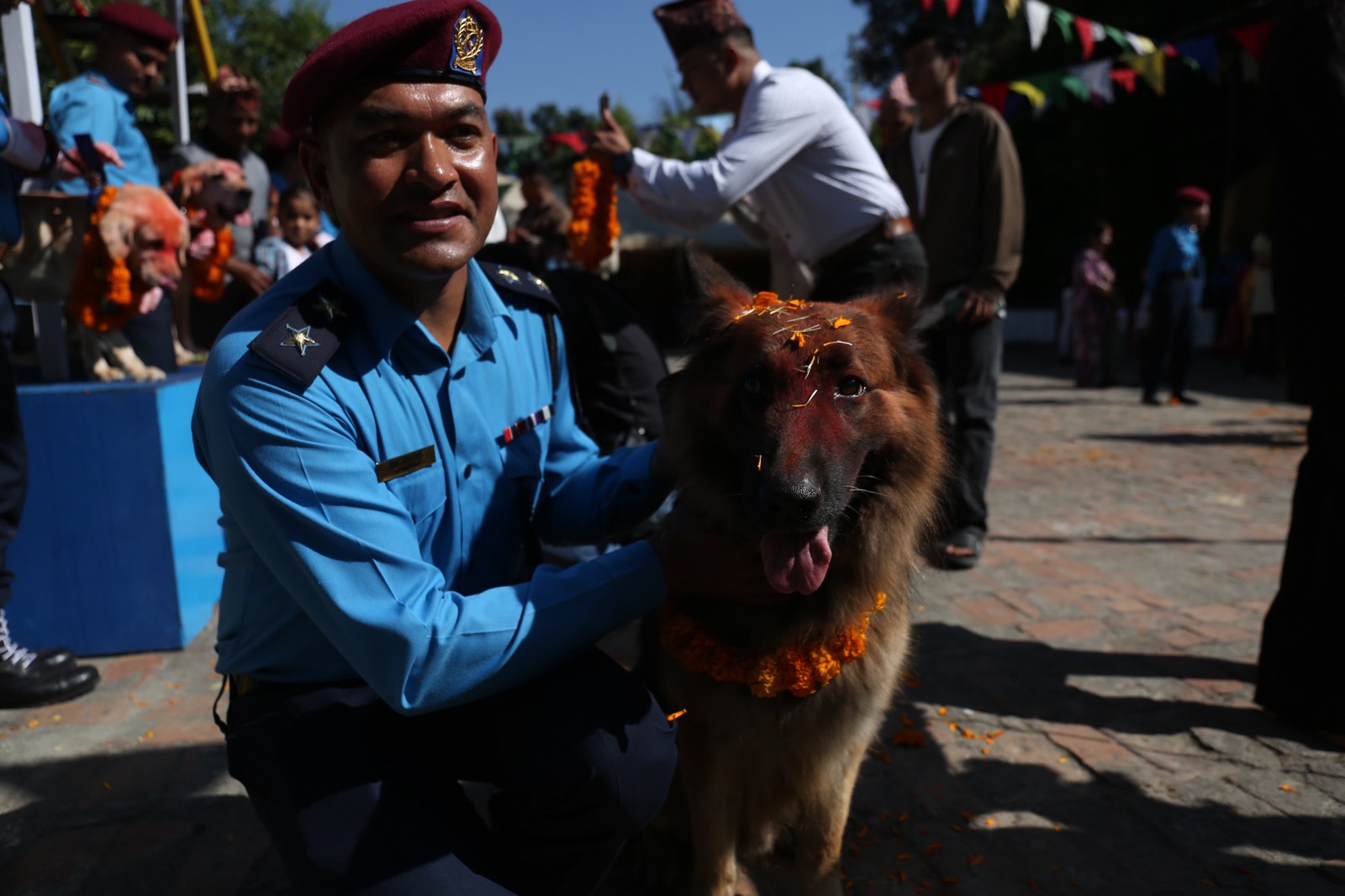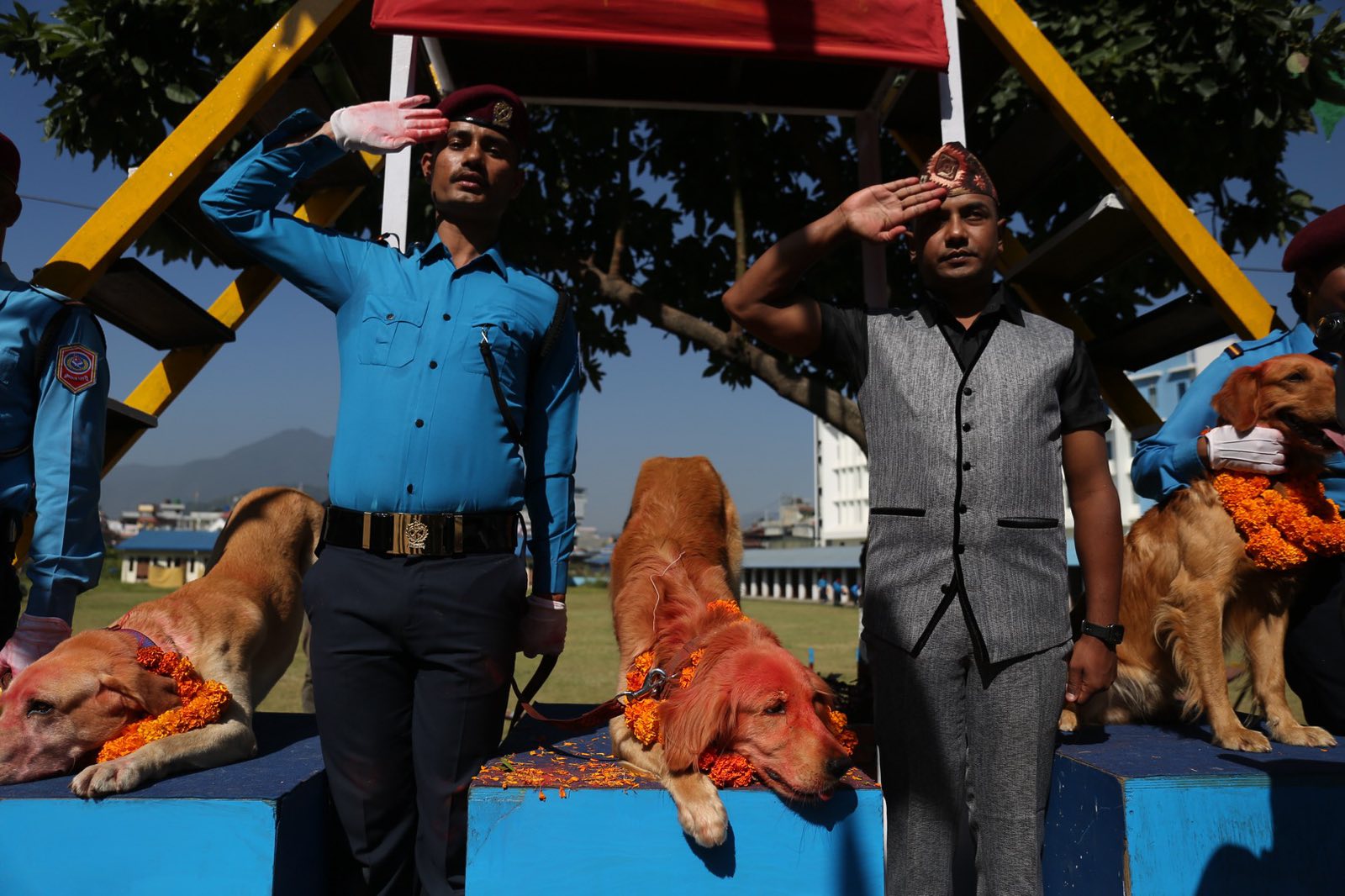 नेपाल प्रहरीले केन्द्रीय प्रहरी कुकुर तालिम केन्द्रमा कुकुर तिहारको अवसरमा कुकुरको पूजा गरी मनाइएको छ। हिन्दु परम्परा अनुसार कात्तिक कृष्ण चर्तुदशीका दिन भैरवको बहान कुकुरको पूजा गर्ने गरिन्छ। मानिसको निकट साथीको रूपमा मानिने कुकुर आज्ञाकारी र रक्षक भएकाले यसको पूजा गर्ने प्रचलन रहेको छ।