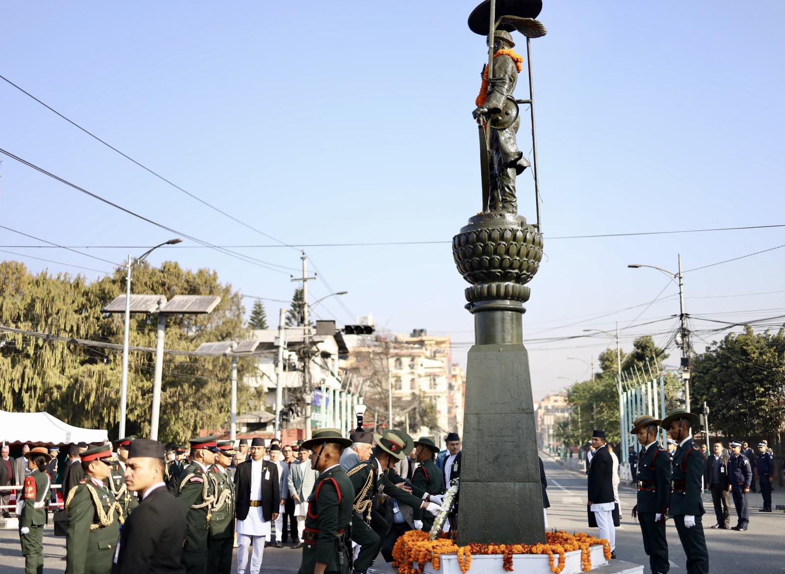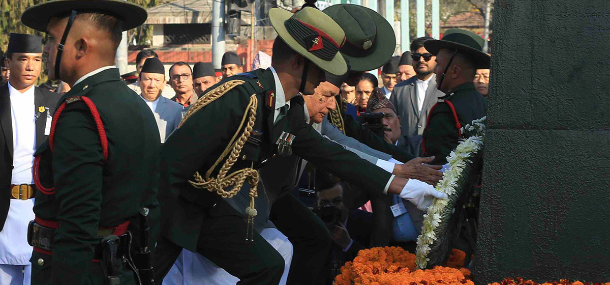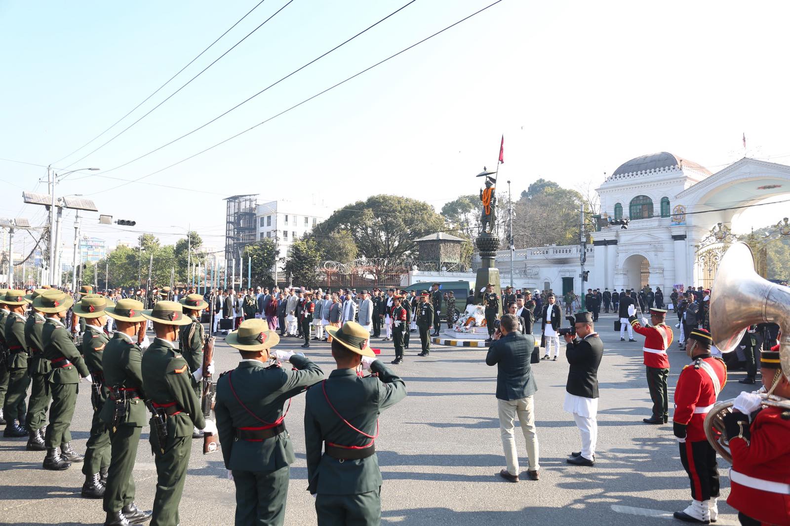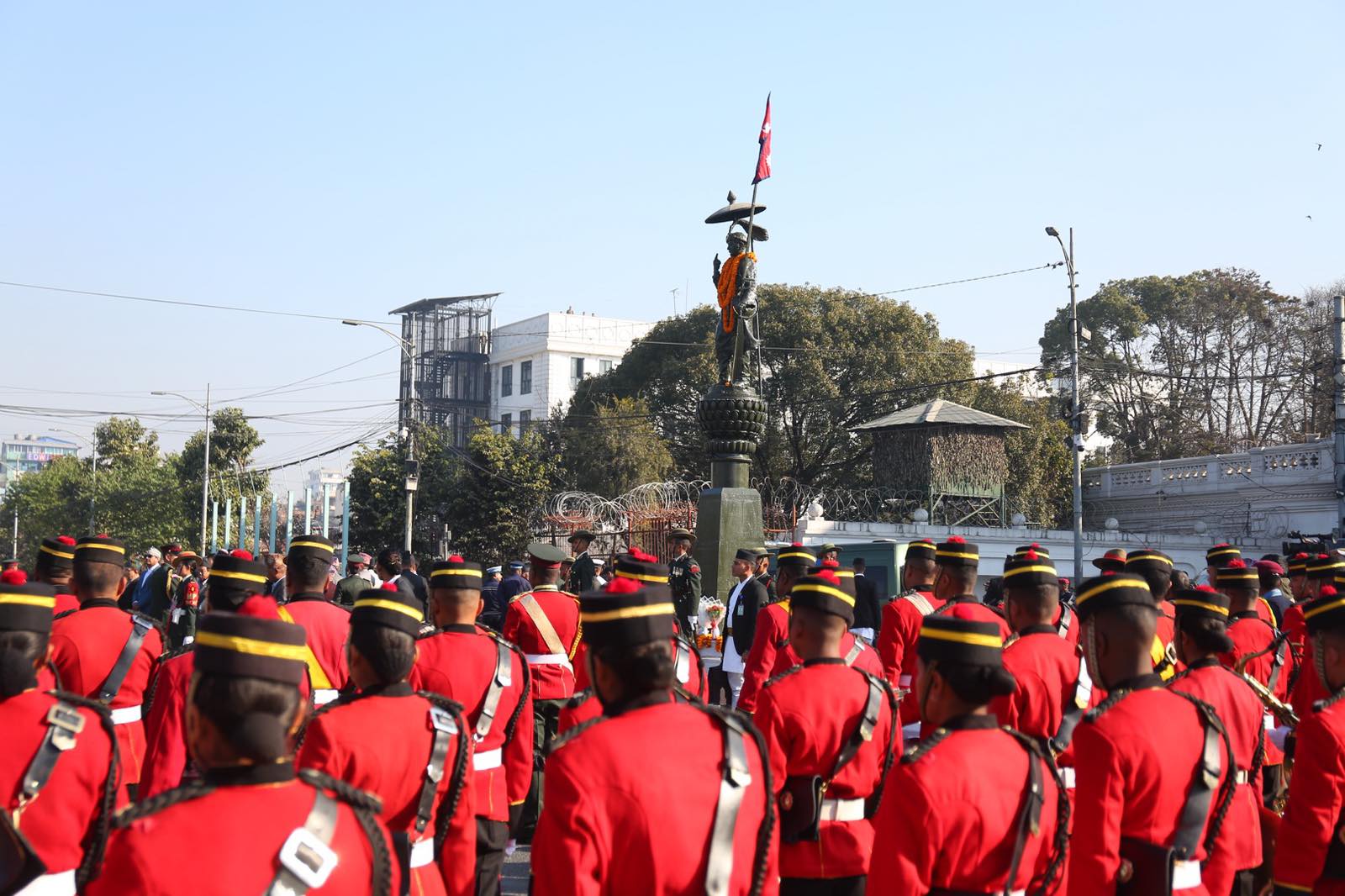 राष्ट्रपति रामचन्द्र पौडेलले राष्ट्र निर्माता पृथ्वीनारायण शाहप्रति सम्मान व्यक्त गरेका छन्। सिंहदरबारको पश्चिमद्वार नजिक रहेको राष्ट्र निर्माताको सालिकमा पुष्पहार अर्पण गरी उनको योगदानको सम्मान गरेका हुन्। त्यस अवसरमा नेपाली सेनाको एक टुकडीले राष्ट्रपतिप्रति सलामी अर्पण गरेको थियो।