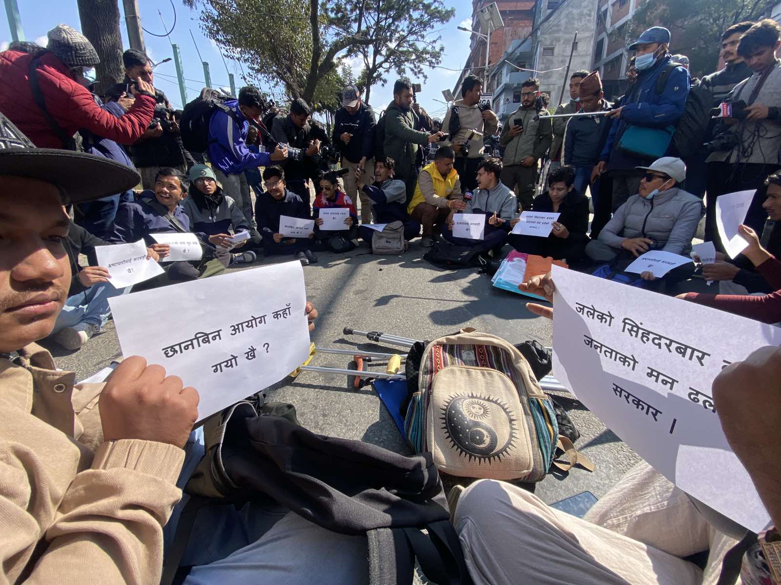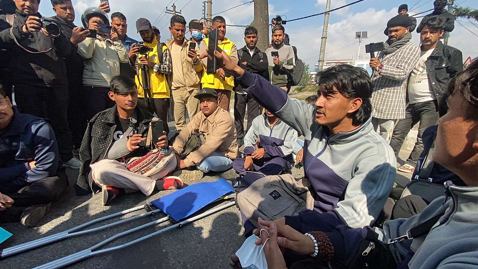जेनजी आन्दोलनका घाइतेहरूले काठमाडौंस्थित माइतीघर मण्डलामा धर्ना दिएका छन्।