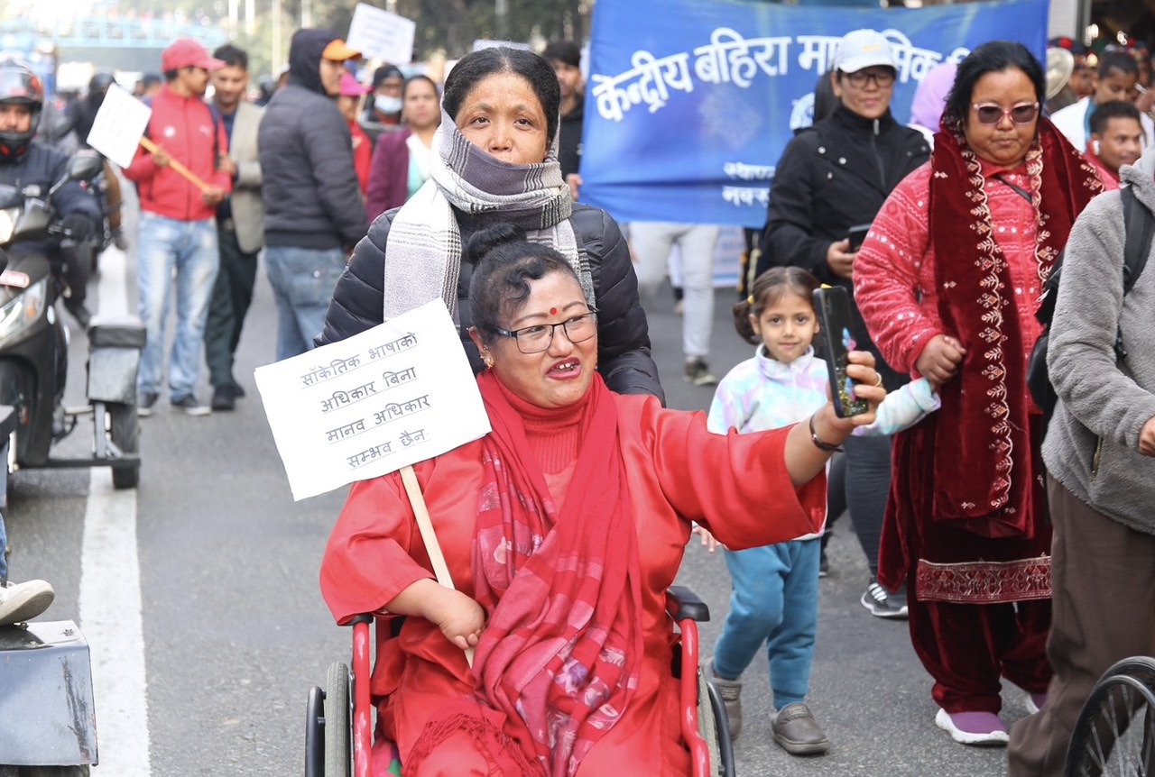 ‘अपांगता समावेशी समाजको प्रतिबद्धता; सामाजिक उन्नतिको संवर्धन’ नारा सहित अपांगता भएका व्यक्तिको ३४ औँ अन्तर्राष्ट्रिय दिवसको प्रभातफेरी गरिएको छ।