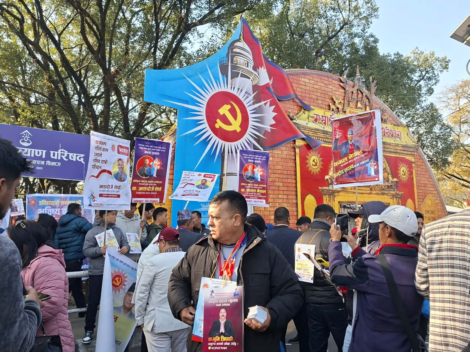 नेपाल कम्युनिष्ट पार्टी (एमाले) को ११औँ राष्ट्रिय महाधिवेशनमा नेतृत्व चयनका लागि आज दिउँसो एक बजेदेखि मतदान हुँदैछ। भृकुटीमण्डपमा भोट माग्नेको चहलपहल छ।