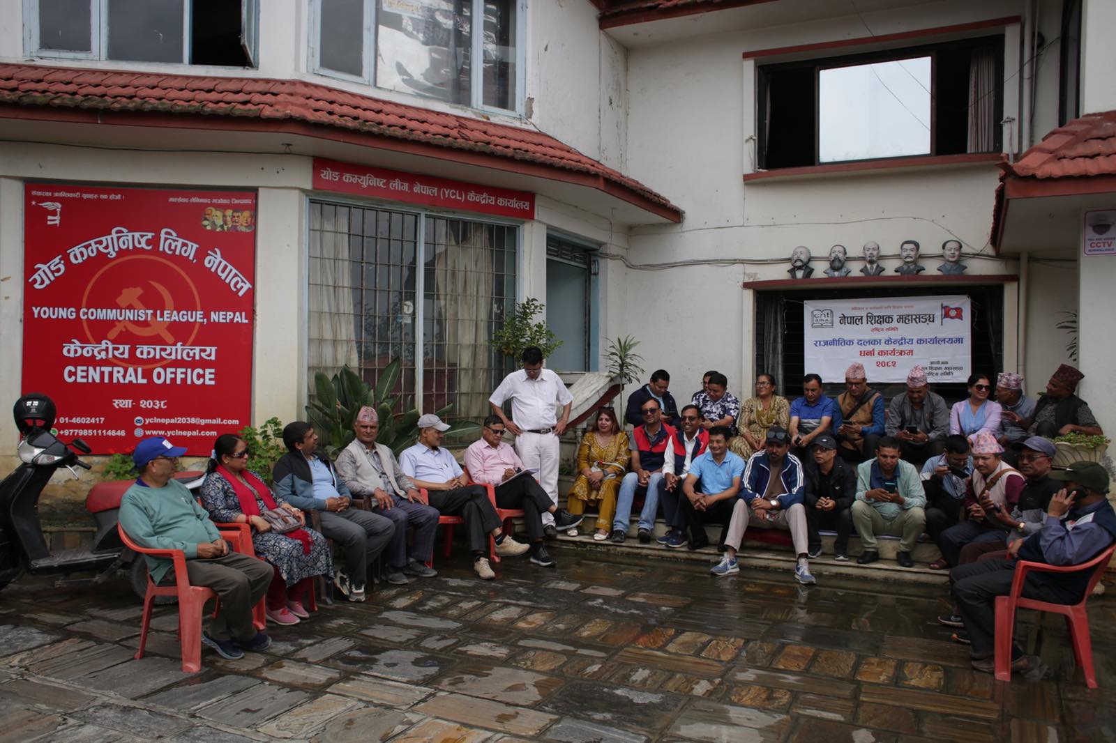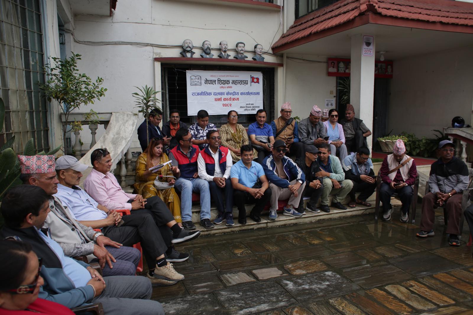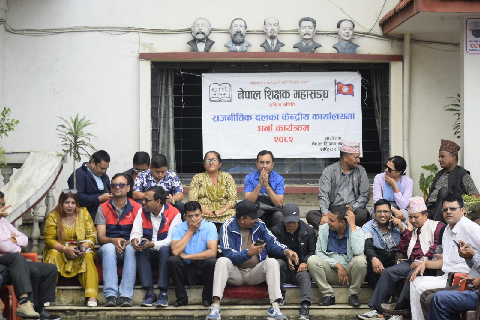 शिक्षक महासंघले नेपाल कम्युनिष्ट पार्टी (माओवादी केन्द्र) को पार्टी कार्यालयमा धर्ना दिएको छ।