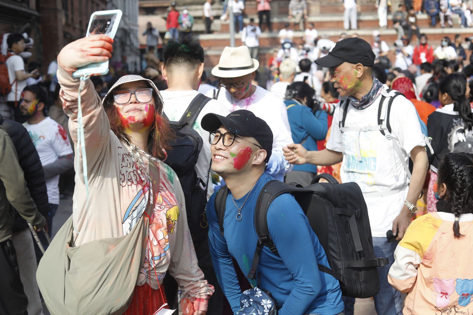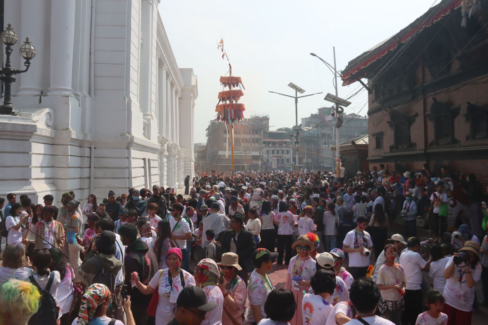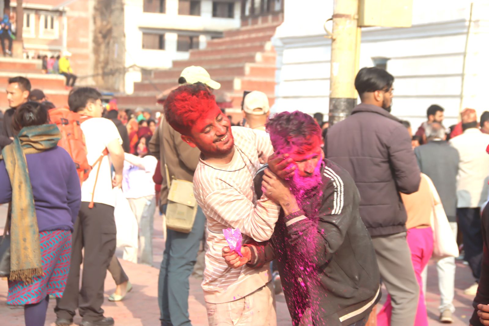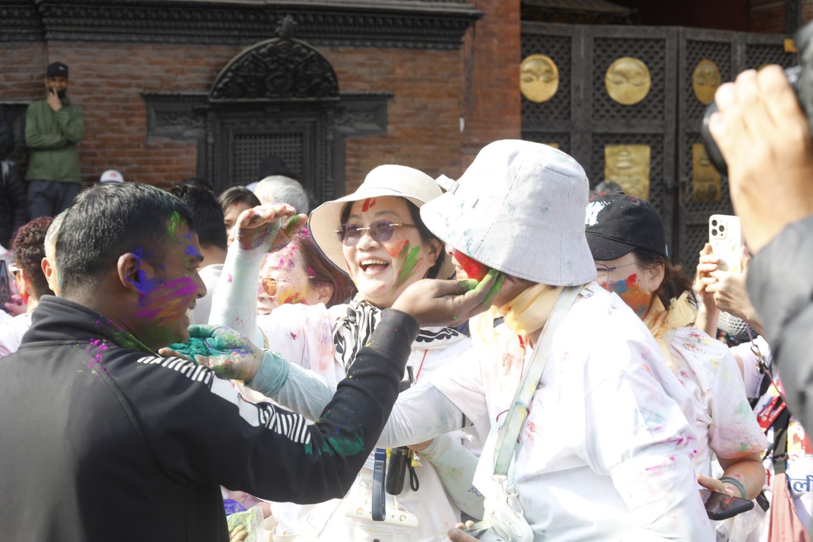 काठमाडौंको वसन्तपुर दरबार क्षेत्रमा रङ खेल्दै उत्सव मनाउन आएका नागरिकको घुइँचो देखिएको थियो भने नेपाल घुम्न आउने पर्यटक पनि होलीको रंगसँगै रमाएका छन् ।