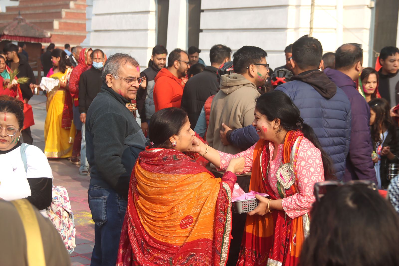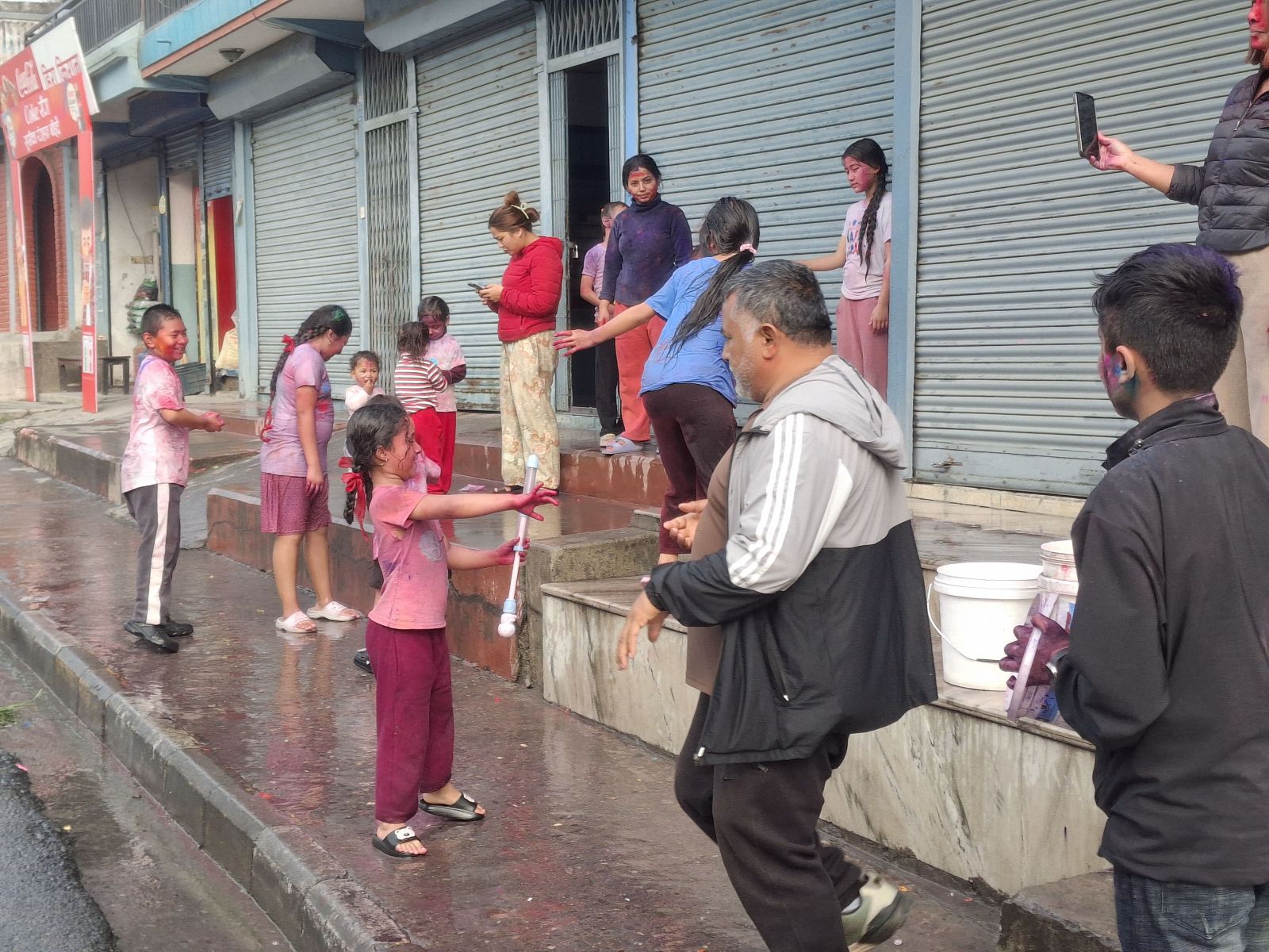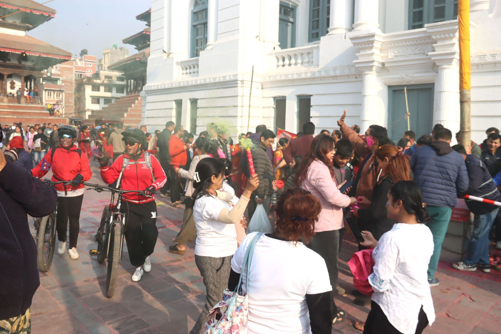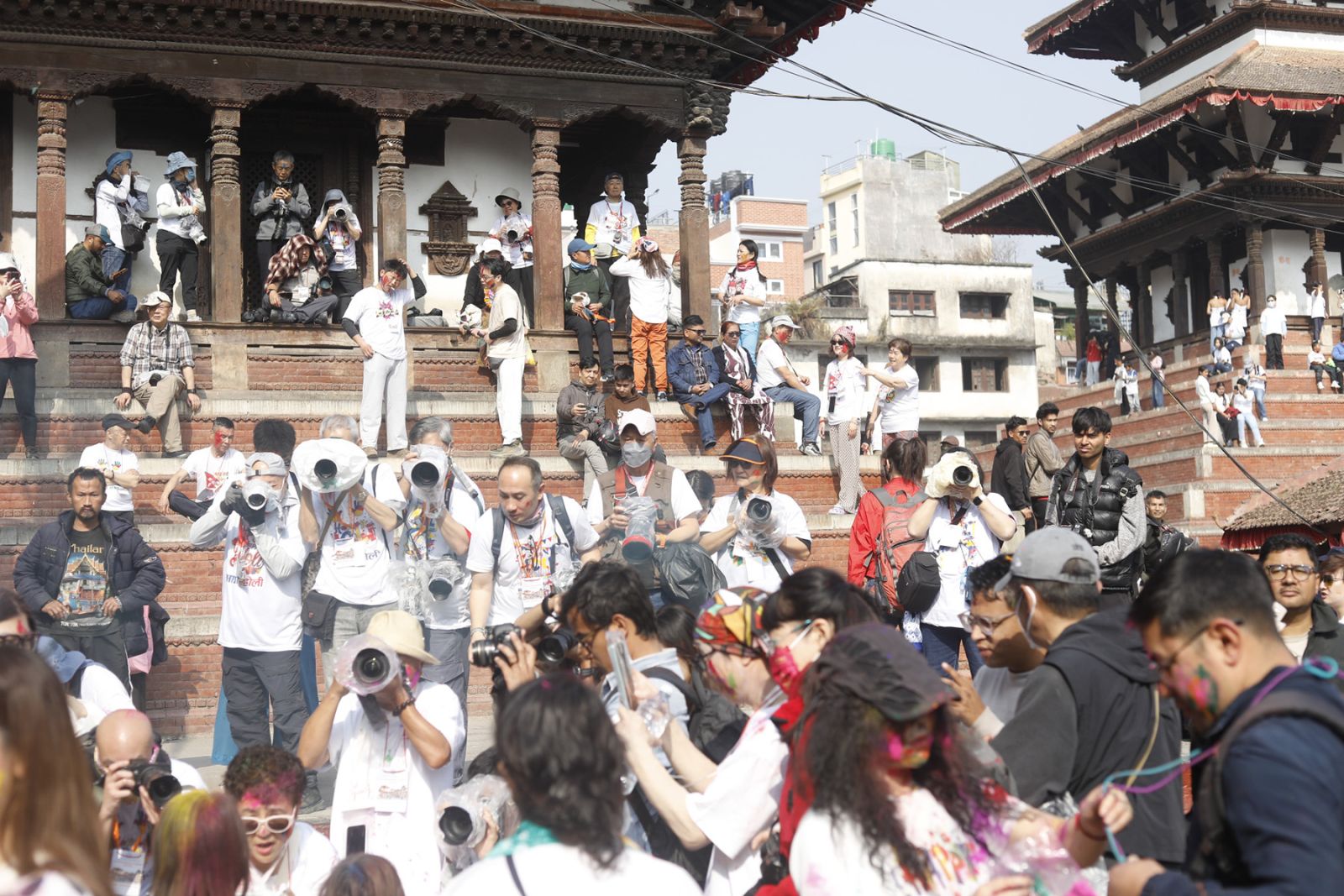 काठमाडौंको वसन्तपुर दरबार क्षेत्रमा रङ खेल्दै उत्सव मनाउन आएका नागरिकको घुइँचो देखिएको थियो भने नेपाल घुम्न आउने पर्यटक पनि होलीको रंगसँगै रमाएका छन् ।