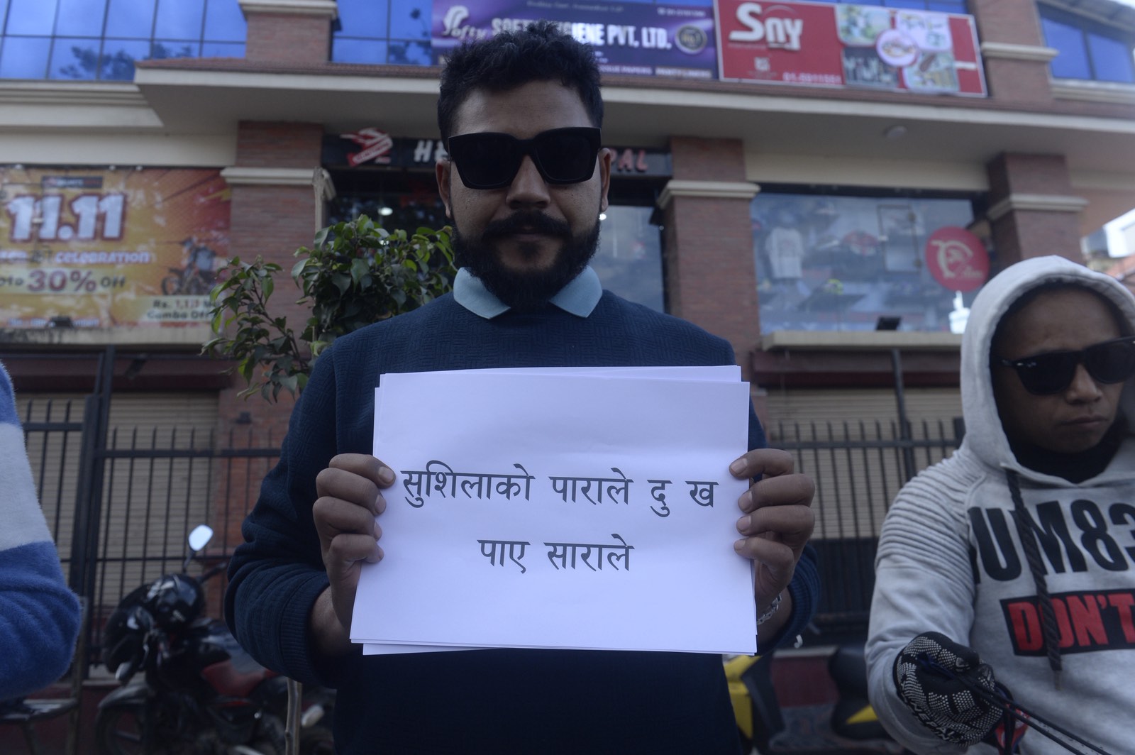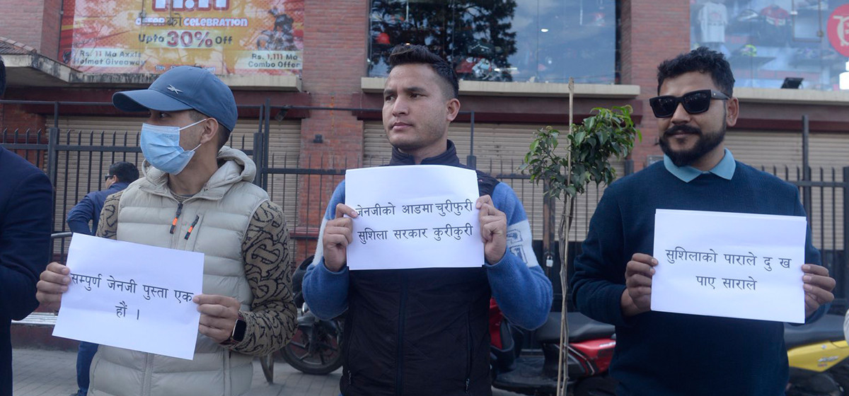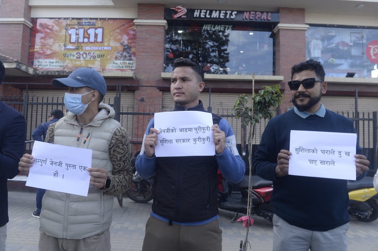 जेनजीमाथिको अत्याचारविरुद्ध शान्तिपूर्ण प्रदर्शन गर्दै माइतीघरमा भेला भएर पम्प्लेटसहित उनीहरूले प्रदर्शन गरेका हुन्। उनीहरूले टाउकोमा कालो पट्टी बांधेर 'ओलीको खेलमा, सुशीलाको झेलमा, जेन-जी सबै जेलमा', 'सुशीलाको पाराले दु:ख पाए साराले', 'जेन जीको आडमा चुरीफुरी सुशीला सरकार कुरीकुरी' जस्ता पम्प्लेट प्रदर्शन गरेका छन्।