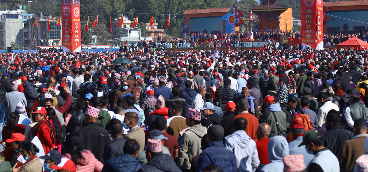 सल्लाघारीस्थित नेपाल ट्रष्टको १०८ रोपनी चौरमा आजबाट सुरु हुने नेपाल कम्युनिष्ट पार्टी (एमाले)को ११औँ राष्ट्रिय महाधिवेशनमा सहभागी हुन बिहानैदेखि विभिन्न जिल्लाबाट आएका नेता, महाधिवेशन प्रतिनिधि एवं कार्यकर्ताको भीड लागेको छ ।
