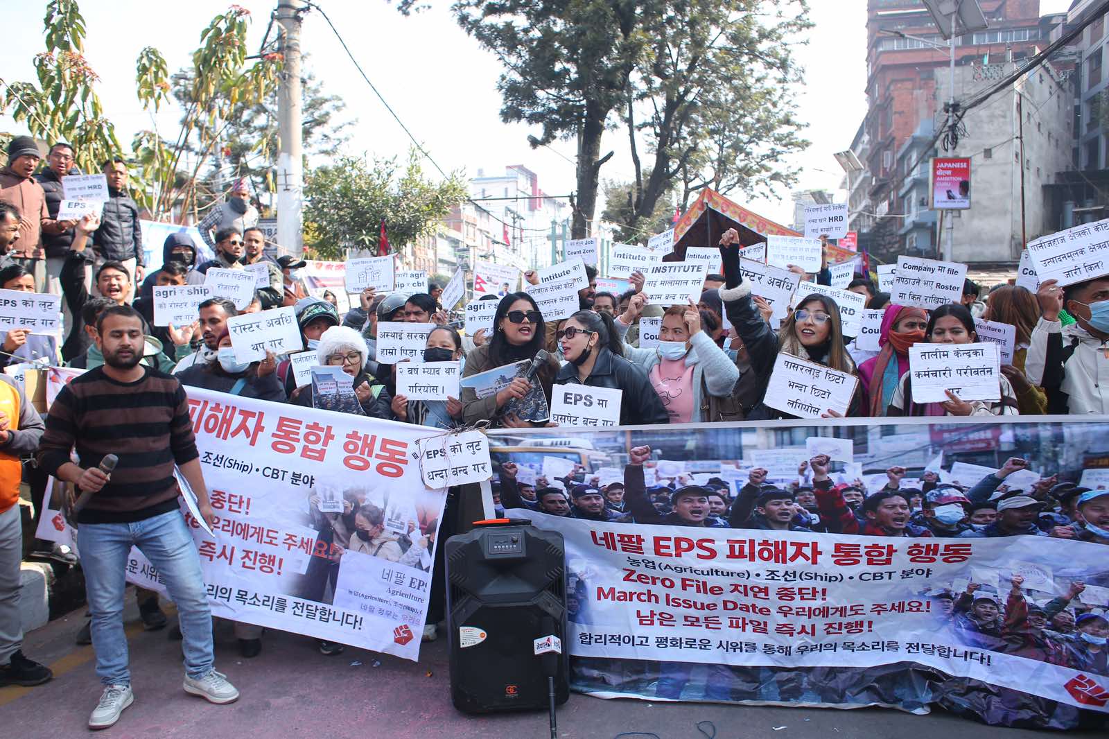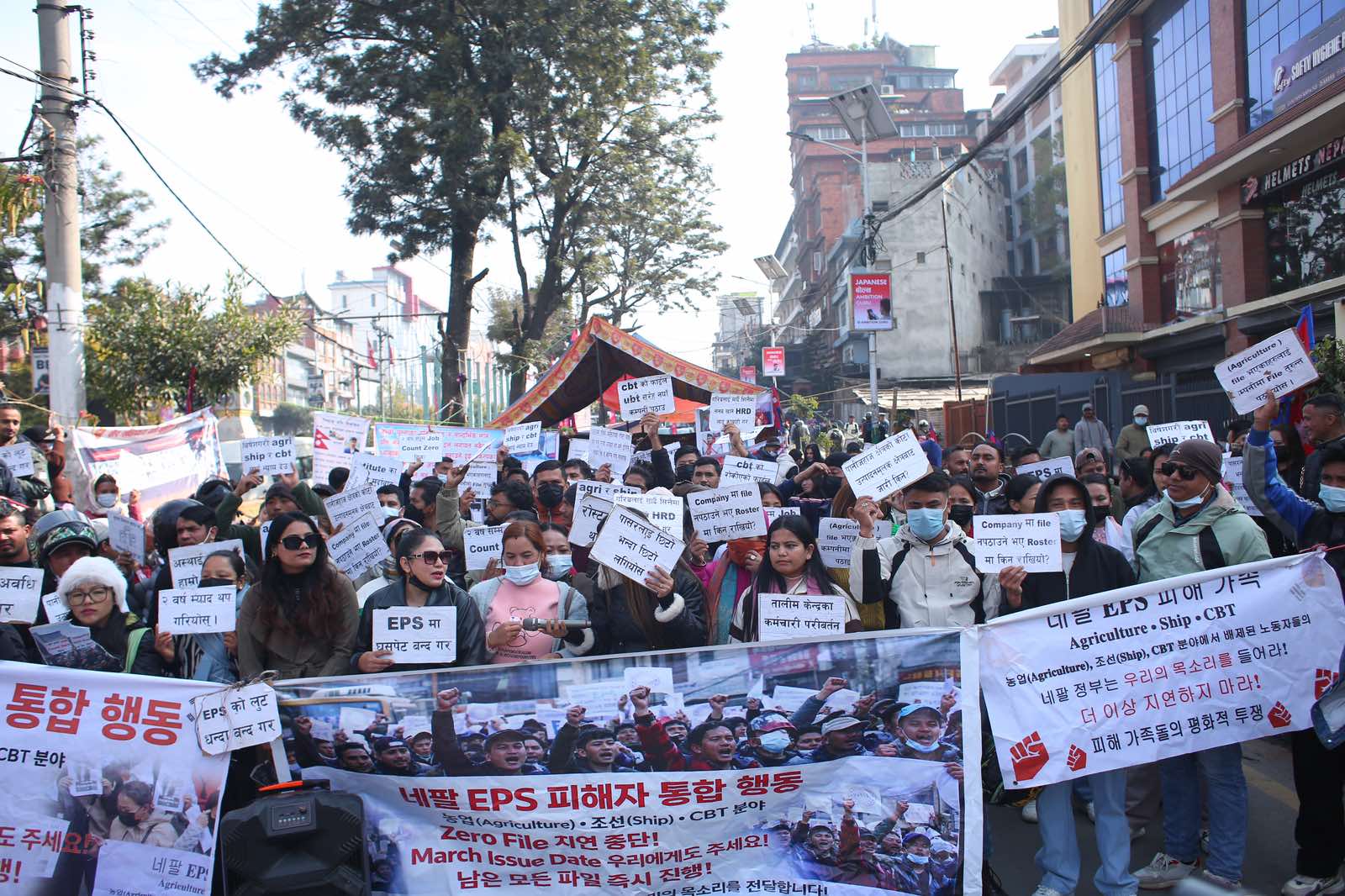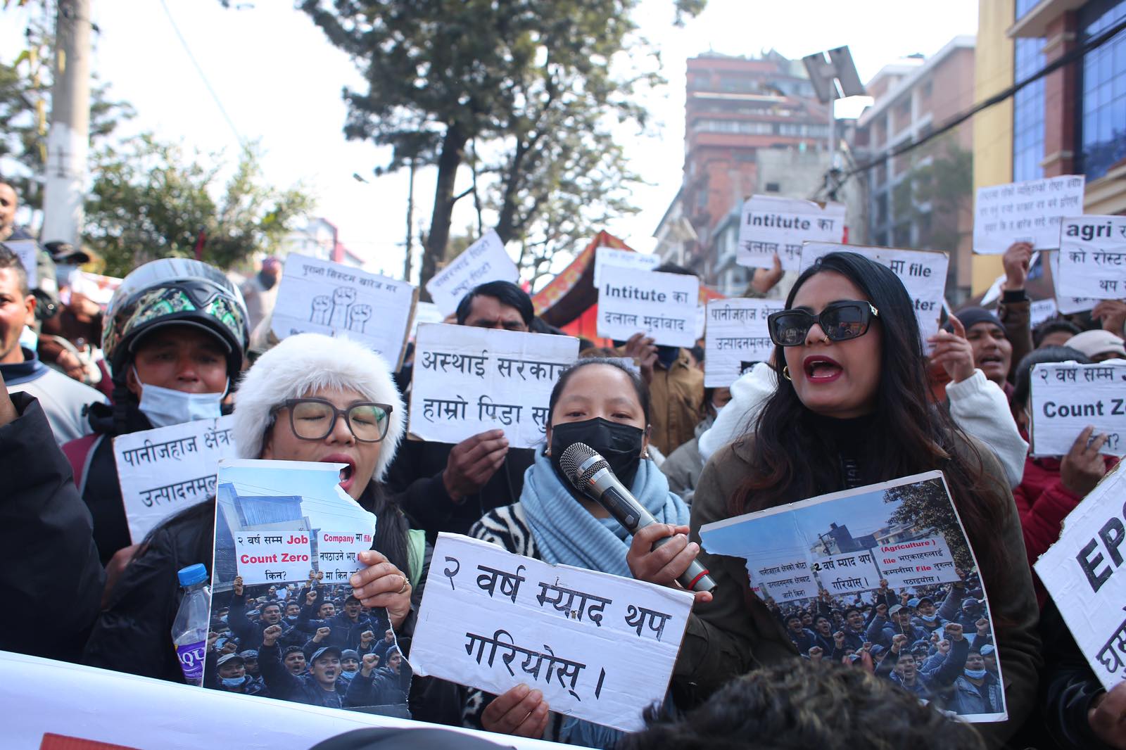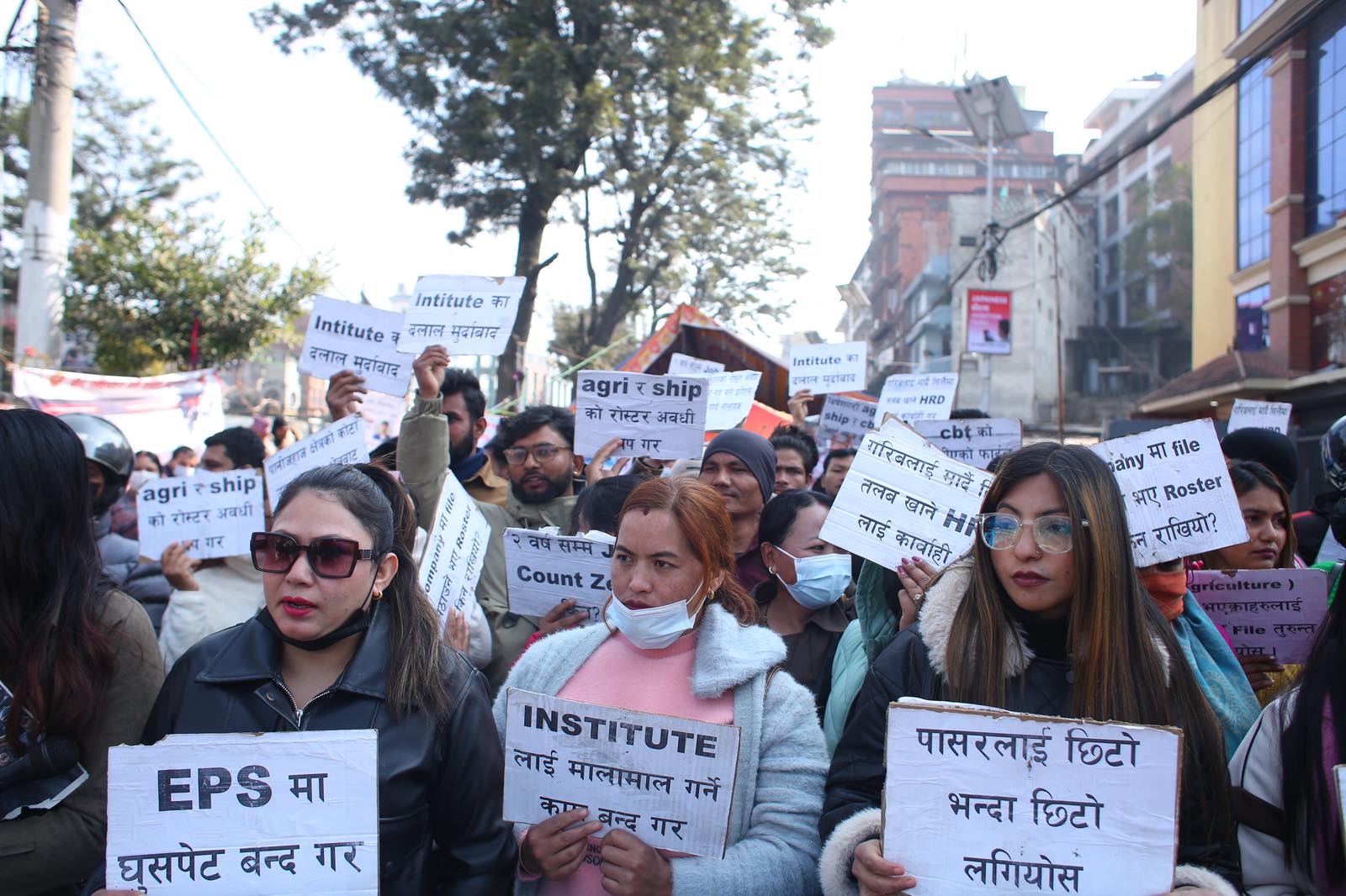 रोजगार अनुमति प्रणाली (इपिएस) अन्तर्गत भाषा तथा सीप परीक्षा उत्तीर्ण भएर पनि लामो समयसम्म दक्षिण कोरिया जान नपाएको भन्दै युवाहरूले प्रदर्शन गरेका छन्।