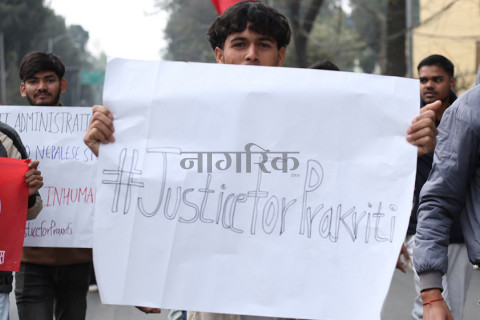भारतको ओडिसास्थित कलिङ्गा इन्स्टिच्युट अफ इण्डस्ट्रियल टेक्नोलोजीमा अध्ययनरत नेपाली विद्यार्थी प्रकृति लम्सालको मृत्यु प्रकरणको निष्पक्ष छानबिन गर्न माग गर्दै काठमाडौँमा प्रदर्शन गरिएको छ। मंगलबार नेपाली कांग्रेस निकट विद्यार्थी संगठन (नेविसंघ) पब्लिक युथ कलेजले प्रकृति लम्सालको न्यायको लागि विरोध प्रदर्शन गरेको हो।