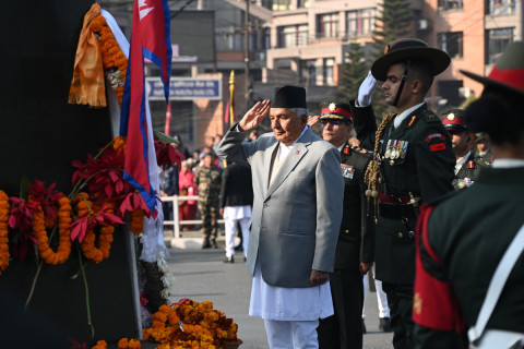 राष्ट्रपति रामचन्द्र पौडेलले पृथ्वीनारायण शाहको शालिकमा माल्यार्पण गरेका छन्। शनिवार पौडेलले राष्ट्रनिर्माता शाहको सिंहदरबार मुल गेट अगाडि रहेको शालिकमा माल्यार्पणसहति पुष्पगुच्छा अर्पण गरेका हुन्।