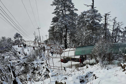 ताप्लेजुङको पाथीभरा क्षेत्रमा यसपटक तेस्रो पटक हिमपात भएको छ। शुक्रबार परेको पानीसँगै हिमपात भएको हो।