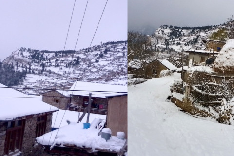एकीकृत बस्ती जस्तै देखिने ताप्लेजुङको उत्तरी क्षेत्रको सुन्दर गाउँ ओलाङचुङगोला अहिले हिउँले सेताम्मे छ।