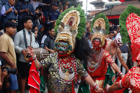 भाद्र शुक्ल द्वादशीका दिन हनुमानढोका अगाडि इन्द्रध्वजासहितको लिङ्गो ठड्याएर इन्द्रजात्रा सुरु भएको हो।