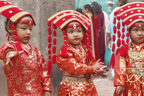 काठमाडौंको वसन्तपुर क्षेत्रमा रहेको तलेजु भवानी मन्दिर अगाडि कुमारीहरूको सामूहिक पूजा गरिएको छ।