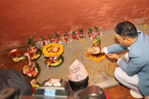 हनुमानढोकास्थित दसैँ घरमा बिहान ९ः१६ को शुभ साइतमा वैदिक विधिपूर्वक घटस्थापना गरिएको छ।