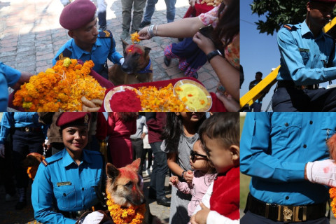 नेपाल प्रहरीले केन्द्रीय प्रहरी कुकुर तालिम केन्द्रमा कुकुर तिहारको अवसरमा कुकुरको पूजा गरी मनाइएको छ।