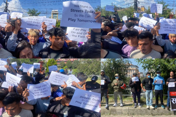 एन्फा मुख्यालयबाहिर खेलाडीको प्रदर्शन (फोटोफिचर)