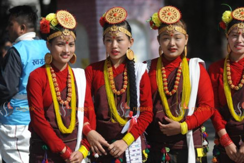माघी मनाउन थारु र मगर समुदायका युवायुवतीहरू आफ्नो संस्कृति झल्कने सांस्कृतिक पोशाकमा सजिएका थिए।