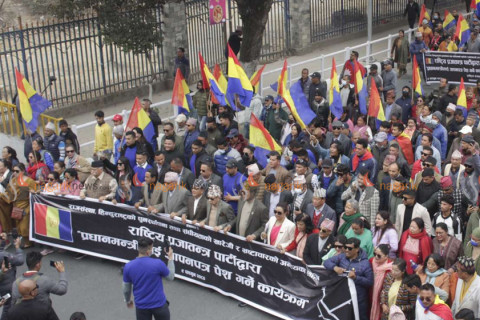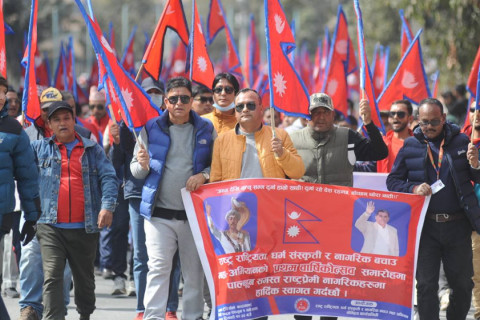 राजसंस्था र हिन्दु राष्ट्र पुन:स्थापनाको माग राख्दै राष्ट्रिय प्रजातन्त्र पार्टी (राप्रपा) ले काठमाडौंमा प्रदर्शन गरेको छ।