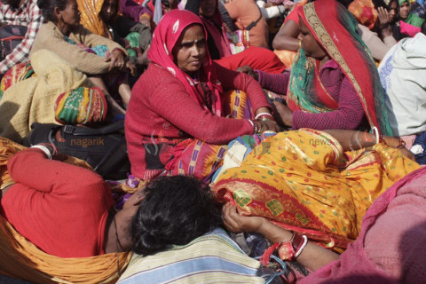 ‘सिंहदरबार मार्च’ मा निस्किएका मिटरब्याजपीडितलाई प्रहरीले सिंहदरबार जान अवरोध गरेपछि सडकमै सुतेका छन्।