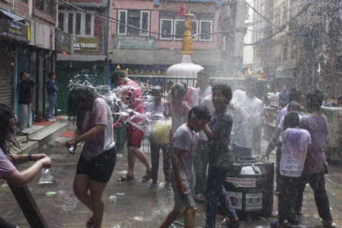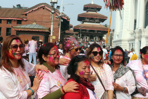 काठमाडौँको वसन्तपुर दरवार स्क्वायर क्षेत्रमा होली मनाउनेहरूको चहलपहल बढेको छ।