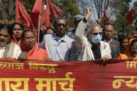 मिटरब्याज पीडितहरूको मार्च पासमा नेपाल समाजवादी पार्टी (नेसपा) का अध्यक्ष बाबुराम भट्टराई पनि सहभागी भएका छन्।