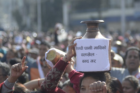 मेलम्ची पानीमाथिको चलखेल बन्द गर्नु पर्ने मागसहित काठमाडौँमा प्रदर्शन गरिएको छ।