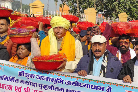 भारतको अयोध्यामा राम मन्दिरको उद्घाटन समारोहका लागि जनकपुरबाट भार (कोसेली) लिएर मुख्यमन्त्री सरोज यादवसहितको टोली भारतका लागि प्रस्थान गरेको छ।