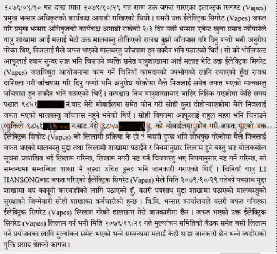 भन्सारमा रहेको ई–सिगरेट सुन ल्याउने समूहमा चिनियाँ नागरिक लुई, वाङ दाओजिङ, लोकेन्द्र पौडेल, खुवाप्रसाद न्यौपाने, राहुल महरालगायतले सम्पर्कसूत्रको काम गरेको स्रोतको दाबी छ। ‘पटकपटक राहुल महराको चासो रहेको पाइएको छ,’सिआइबी स्रोतले भन्यो। २०७९ पुस १० गते फ्लाई दुबईको उडान नम्बर एफजेड–०५८७ बाट नेपाल आएका एक चिनियाँ यात्रु ली हानसोङले लगेजमा राखी इलेक्ट्रिक सिगरेट (भेप) भित्र ठुलो मात्रामा सुन लुकाएर ल्याएका थिए। त्यतिबेला भन्सार विभागले ई–सिगरेट बरामद गरेर यात्रुलाई छाडेको थियो। यात्रु छाडेपछि ती चिनियाँ नागरिकले विभिन्न व्यक्तिलाई प्रयोग गरेर महरा बाबुछोराको सम्पर्कमा पुगेको सिआइबी स्रोतले जनाएको छ। ‘अरू चिनियाँ नागरिकको पनि प्रयोग भएको र महरा बाबुछोराको सम्पर्क पनि उनीहरूसँग भएको पाइन्छ,’ स्रोतले भन्यो।