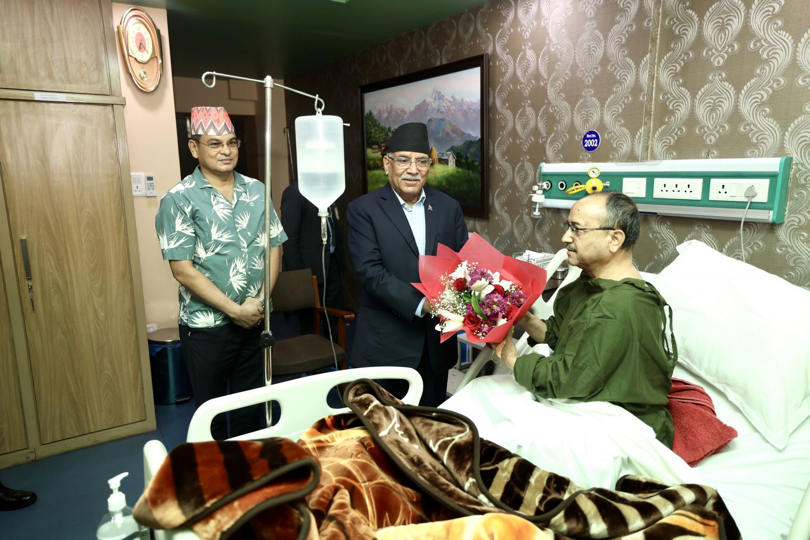 प्रधानमन्त्री पुष्पकमल दाहालले नेपाली सेनाको वीरेन्द्र अस्पताल छाउनीमा उपचारार्थ उपप्रधानमन्त्री एवं रक्षामन्त्री पूर्णबहादुर खड्कालाई भेट गरी स्वास्थ्य अवस्थाबारे जानकारी लिएका छन्।