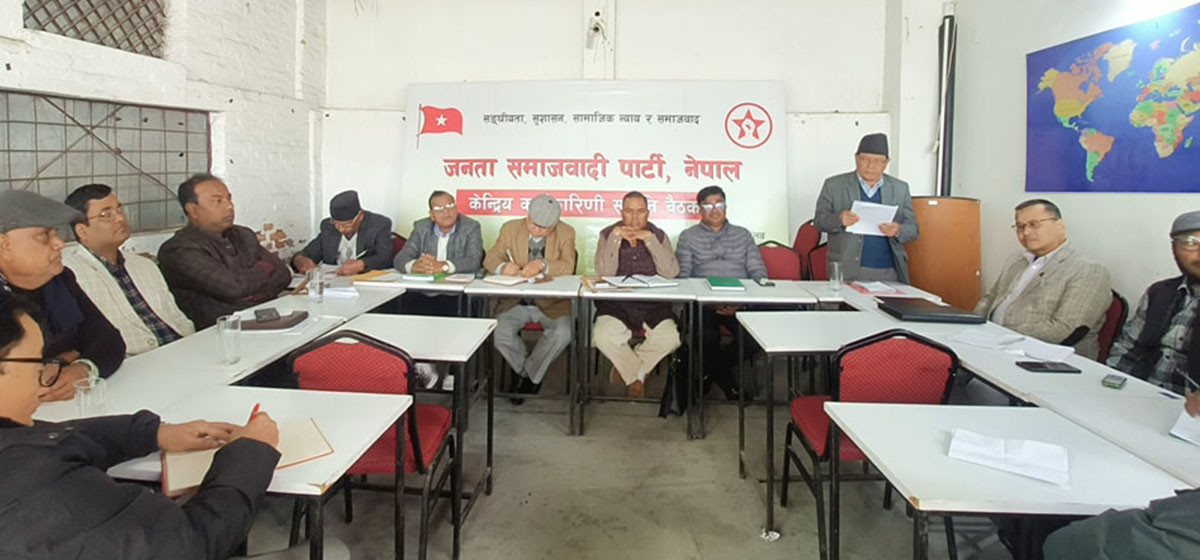 जनता समाजवादी पार्टी नेपालको केन्द्रीय कार्यकारिणी समिति बैठक आज दोस्रो पनि जारी छ। पार्टी केन्द्रीय कार्यालय बालकुमारीमा शनिबारदेखि सुरु भएको बैठकमा आज पनि विषयगत छलफल भइरहेको छ।