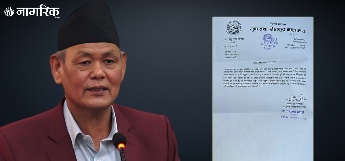 नेपाल स्काउटको कर्मचारी सेवा नियमावली २०५२ संशोधन गर्दा ‘नेपाल सरकार’ लेखिनुपर्ने स्थानमा पुरानो व्यवस्था ‘श्री ५ को सरकार’ लेखिएको कागजात प्रमाणीकरण भएपछि मन्त्री चौधरी आलोचनाको घेरामा परे।