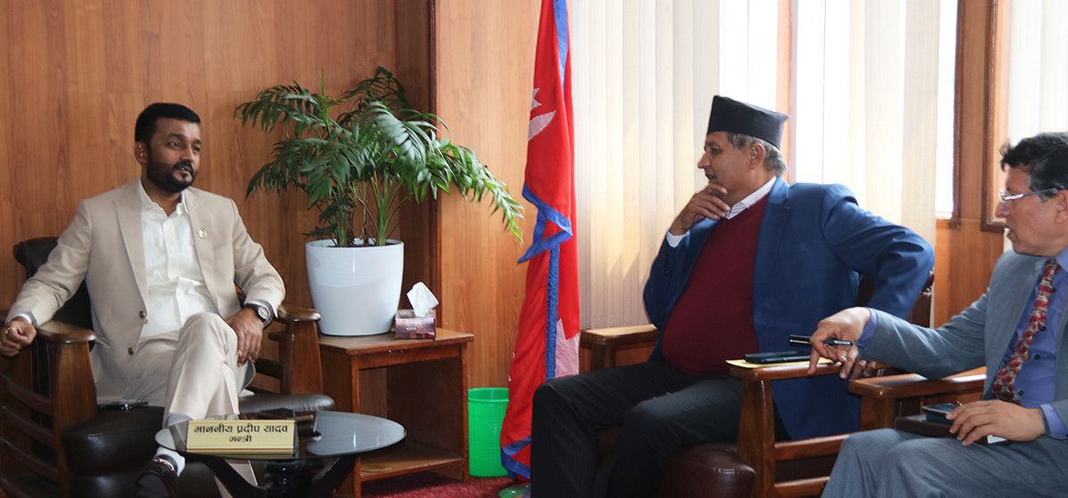 खानेपानीमन्त्री प्रदीप यादव तथा लुम्बिनी प्रदेशका मुख्यमन्त्री चेतनारायण आचार्यबीच मंगलबार मन्त्रालयमा भेटवार्ता सहित लुम्बिनी प्रदेशमा हाल सञ्चालनमा रहेका विभिन्न खानेपानी आयोजनाका विषयमा छलफल भएको छ।