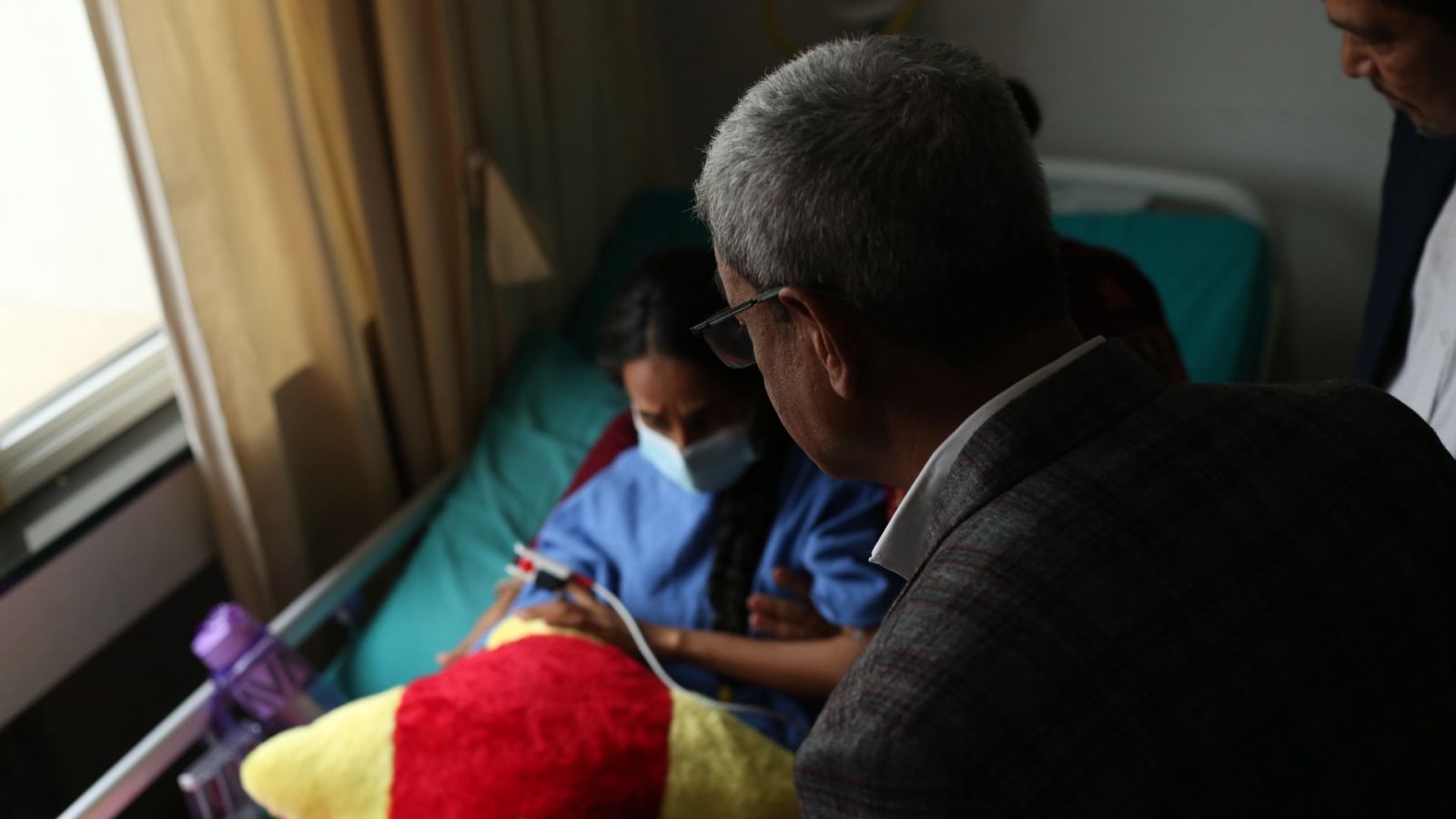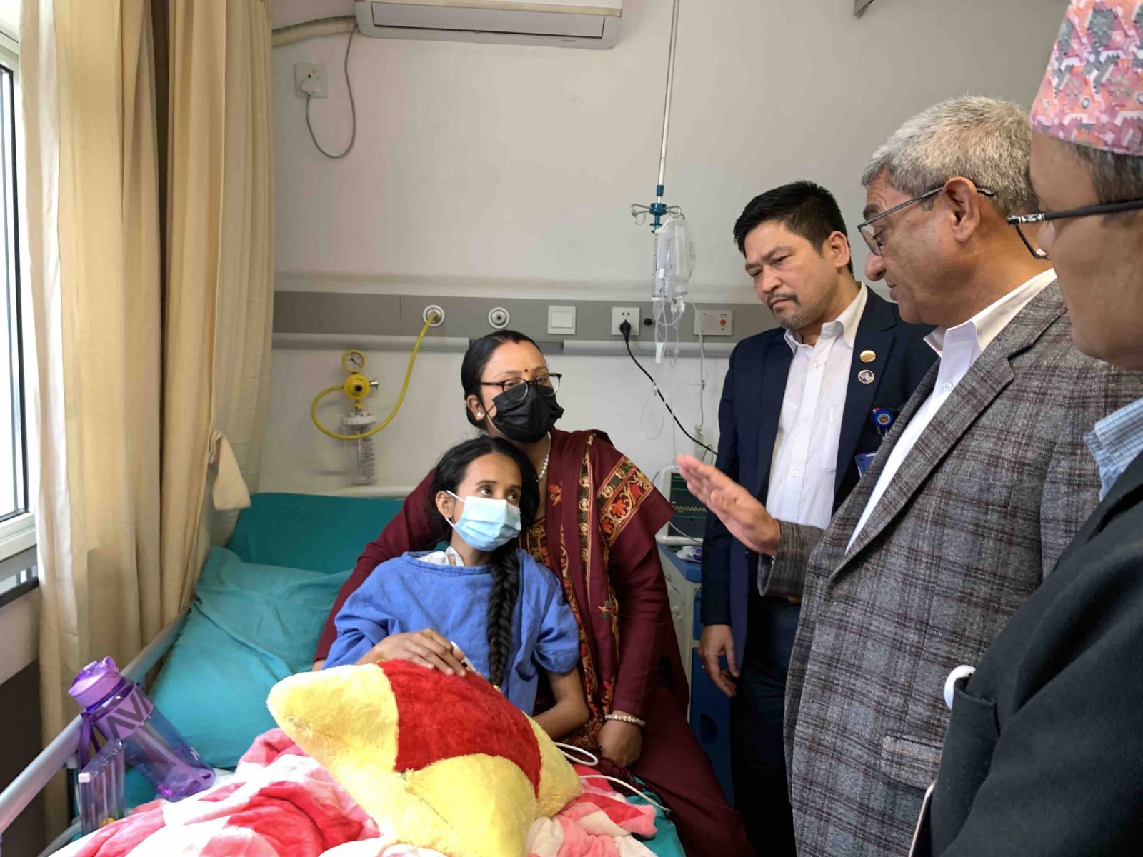 गृहमन्त्री रमेश लेखकले चैत १३ गते तीनकुनेकाे प्रदर्शनमा घाइते भएकाहरूलाई भेटेका छन्।