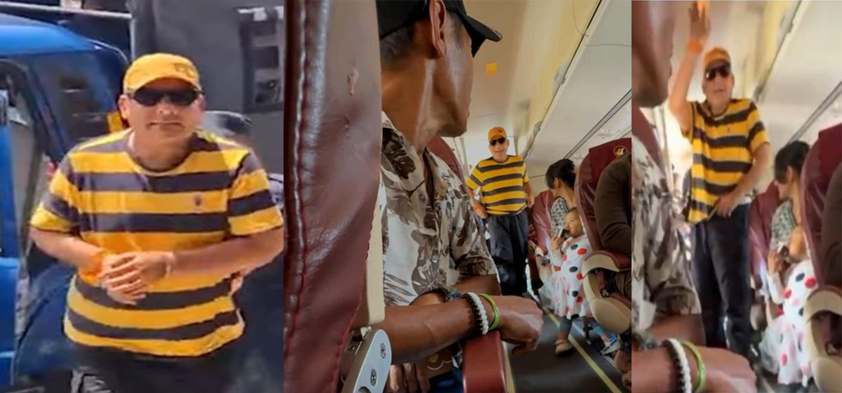प्रसाईं जहाजभित्र पसेर यात्रुलाई हात हल्लाएको समेत भिडिओ देख्न सकिन्छ।