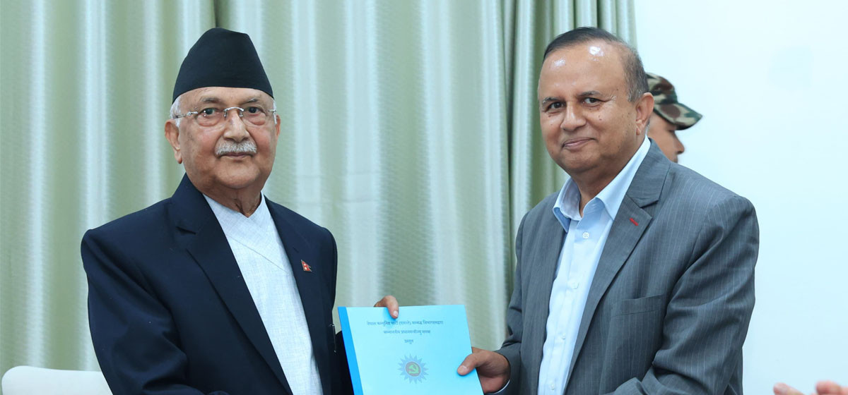 प्रधानमन्त्री तथा मन्त्रिपरिषद्को कार्यालय, सिंहदरबारमा एमालेका महासचिव शंकर पोखरेलसहितका नेताहरुले प्रधानमन्त्री एवं पार्टीका अध्यक्ष ओलीलाई सो सुझावपत्र हस्तान्तरण गरेका हुन्।