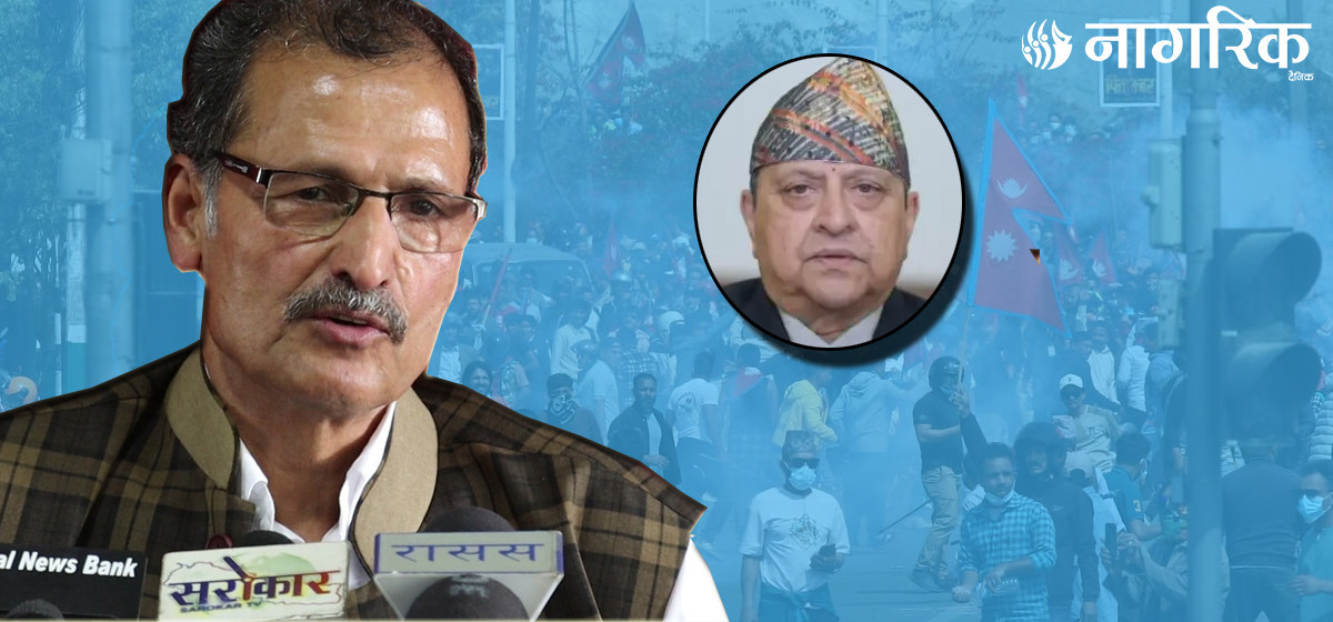 ‘प्रतिगमनविरुद्ध हामी आफ्नै किसिमले गइरहेका छौँ। हाम्रो कार्यक्रम यति प्रभावकारी भएको कि अस्ति चैत १५ गते.. कुनै दिनले पाँच वर्ष, १० वर्ष र १५ वर्षसम्मको नेतृत्व गर्छन् रे,’ सापकोटाले भने,‘हामीले १८ वर्षसम्म राजतन्त्रबारे चिर्न नसकेको भ्रम एक दिनमा साफ भयो।’