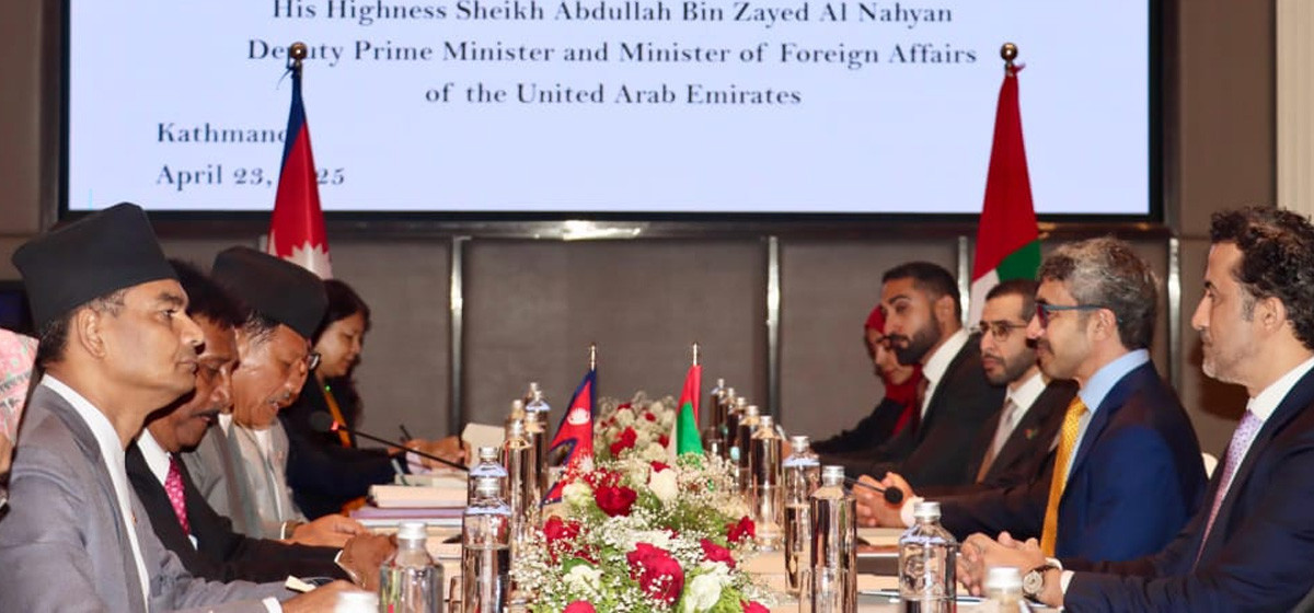 परराष्ट्रमन्त्री शेख अब्दुल्लाह बिन जायेद अल नाहयान दुई दिने भ्रमणका क्रममा काठमाडौं आएका छन् । उनले बुधबार नै प्रधानमन्त्री केपी शर्मा ओली, परराष्ट्रमन्त्री आरजु राणा देउवालाई पनि भेट्दै छन्।