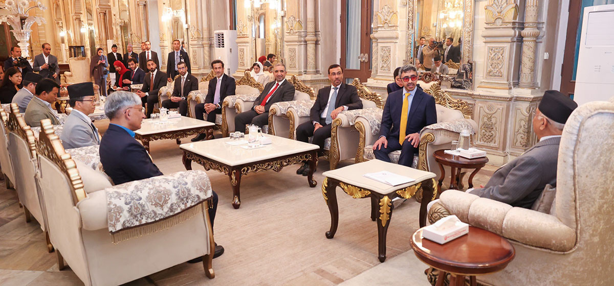 प्रधानमन्त्री केपी शर्मा ओलीसँग संयुक्त अरब इमिरेट्स (युएइ) का उपप्रधानमन्त्री एवं विदेशमन्त्री शेख अब्दुल बिन जायेद अल नाह्यानले आज (बुधबार) शिष्टाचार भेट गरेका छन्।