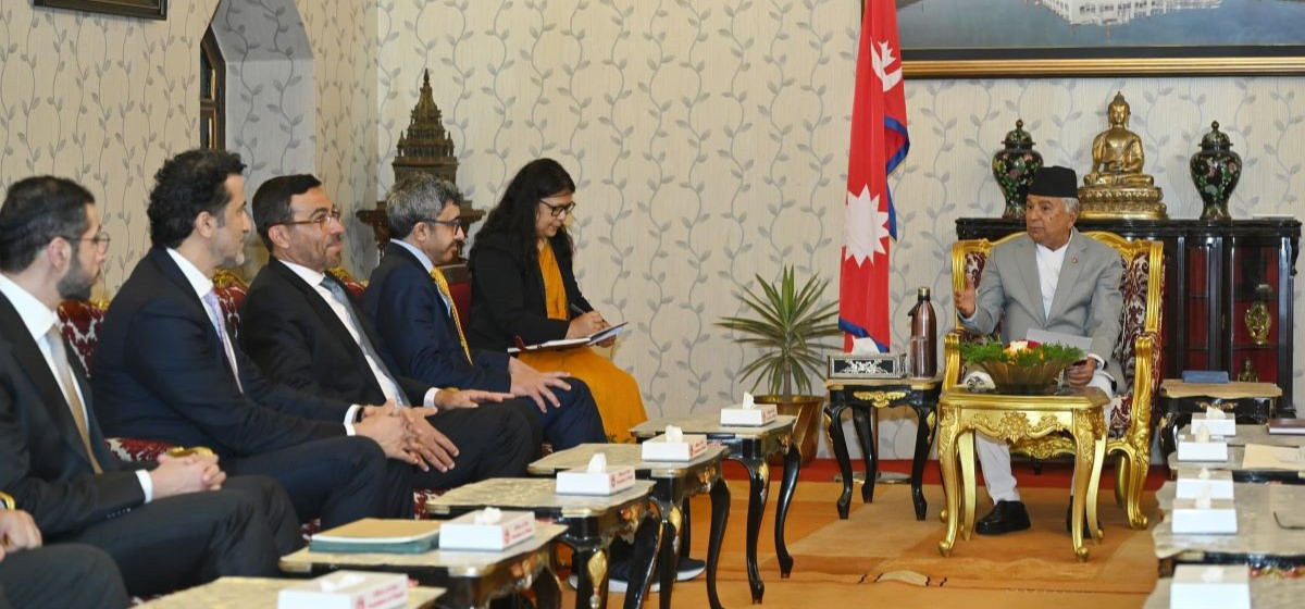 मंगलबारदेखि दुईदिने औपचारिक भ्रमणमा रहेका यूएईका उपप्रधानमन्त्री नाह्यानले राष्ट्रपति भवन शितल निवासमा बुधबार भेट गरेका हुन् ।