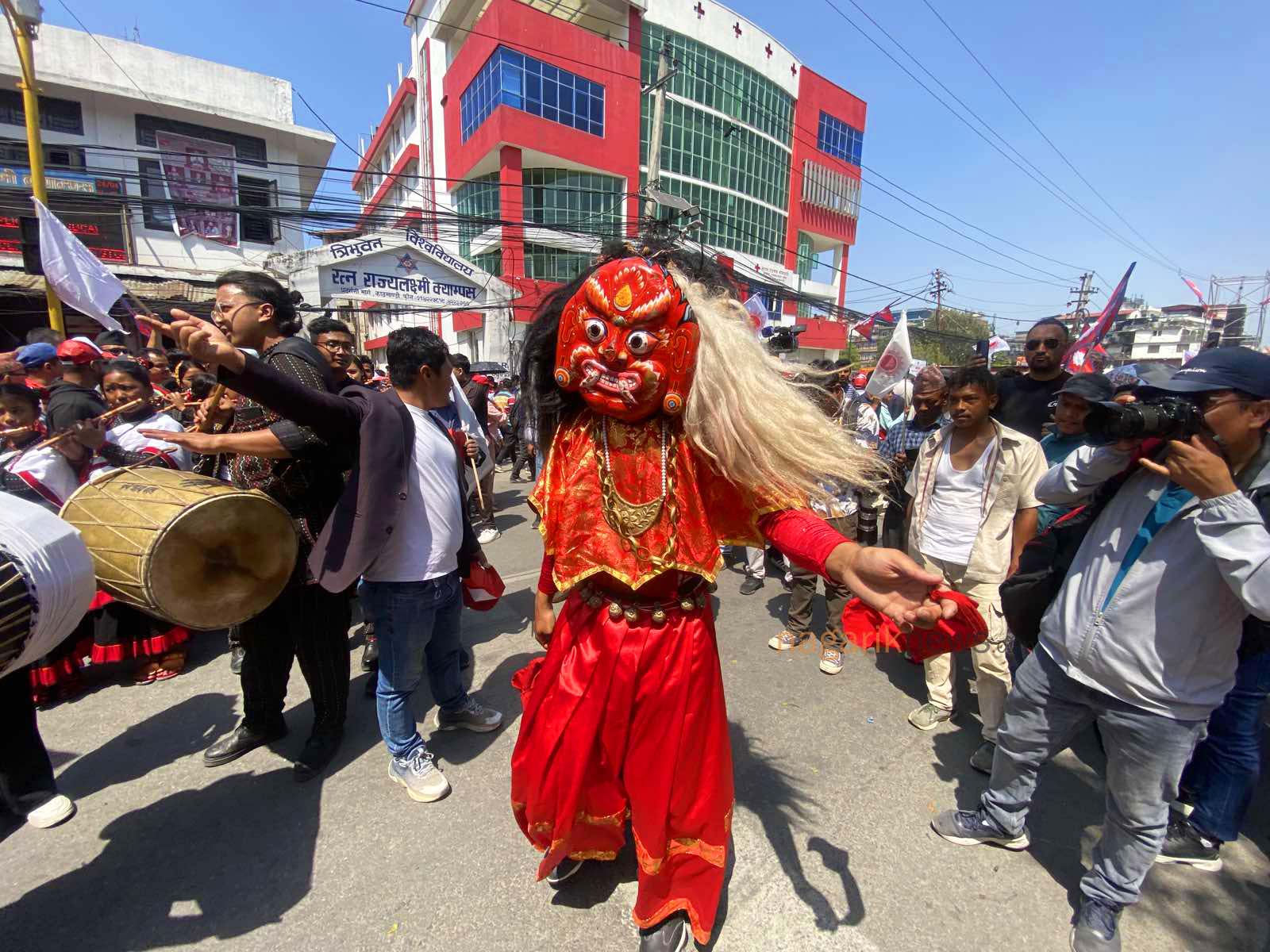 जनआन्दोलनमार्फत निरङ्कुश राजतन्त्रको अन्त्य भएको दिनको स्मरणमा आयोजित कार्यक्रममा सांस्कृतिक झाँकी, नाचगान र सेल्फीमा नेता-कार्यकर्ता व्यस्थ देखिएका छन्।