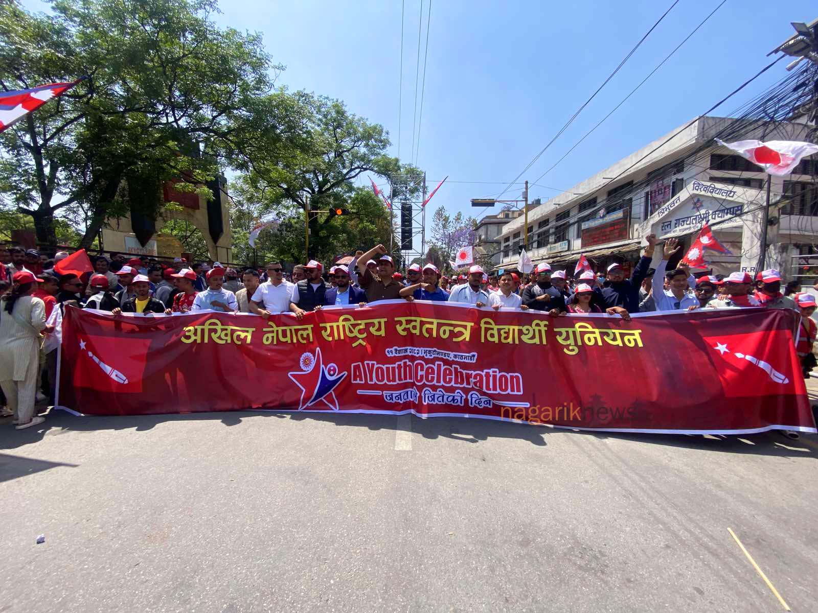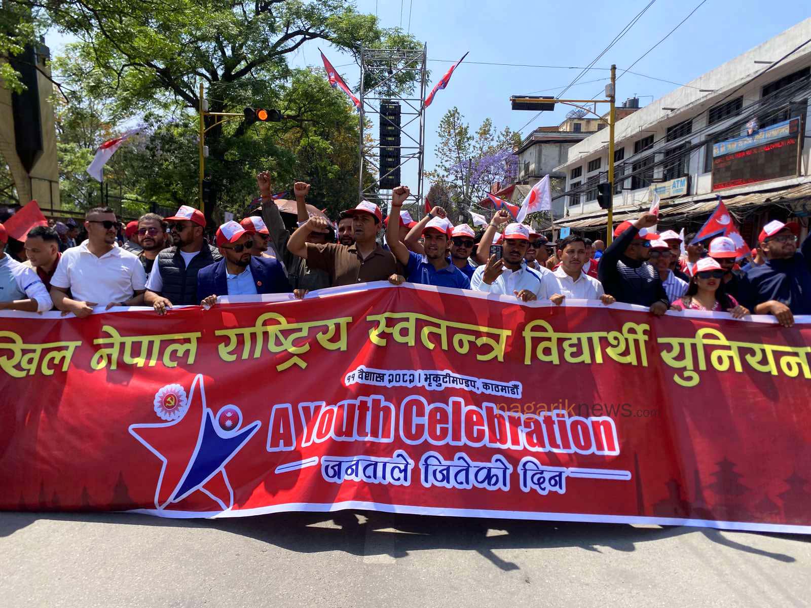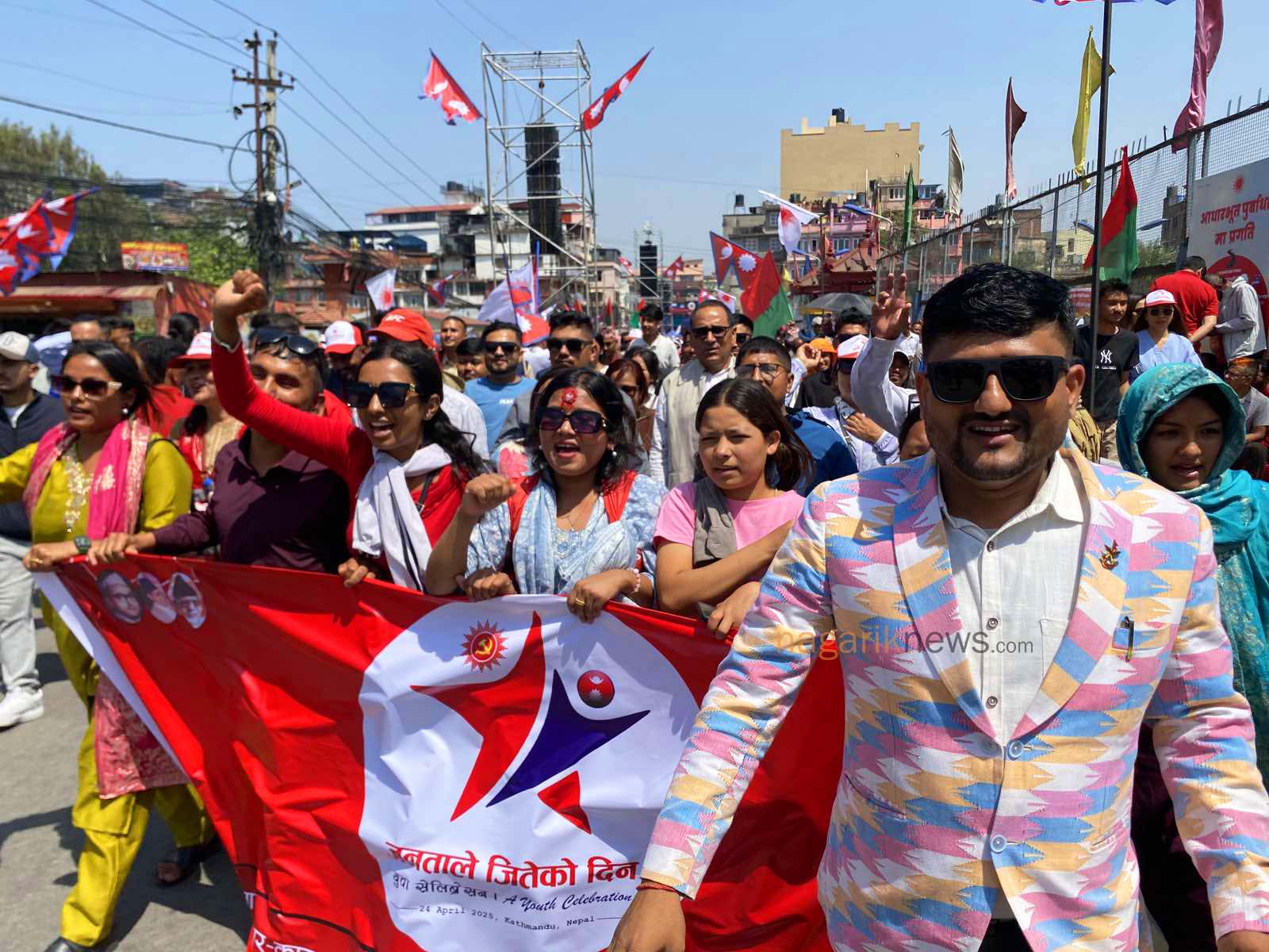 सत्तारुढ नेपाल कम्युनिस्ट पार्टी (एमाले) ले लोकतन्त्र दिवसको अवसरमा काठमाडौंको भृकुटीमण्डपमा आयोजना गरेको ‘यूथ सेलिब्रेसन’ मा हजारौं युवा सहभागी भएका छन्।