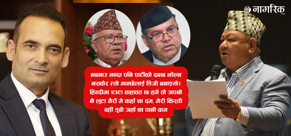 ‘अघि अमरेश माननीय भन्नुभयो, जुनियर मान्छेलाई ल्याएर डिजी बनाइयो, हो बनाइयो। मेरै पालामा बनेको हो,’ आलेले भने,‘तर निधारमा लेखेको हुँदैन नि यो चोर हो कि राम्रो हो, साधु हो भनेर। थाहा त हुँदैन।’