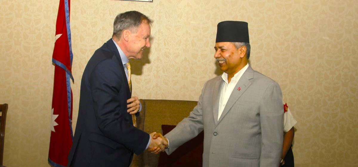 उपराष्ट्रपति रामसहाय प्रसाद यादवसँग नेपालका लागि बेलायतका राजदूत रोबर्ट डोंमिनिक रुसेल फेनले शिष्टाचार भेटवार्ता गरेका छन् । काठमाडौंको लैनचौरस्थित उपराष्ट्रपतिको कार्यालयमा सोमबार भएको भेटमा द्विपक्षीय सम्बन्धका विविध आयामका विषयमा कुराकानी भएको थियो ।