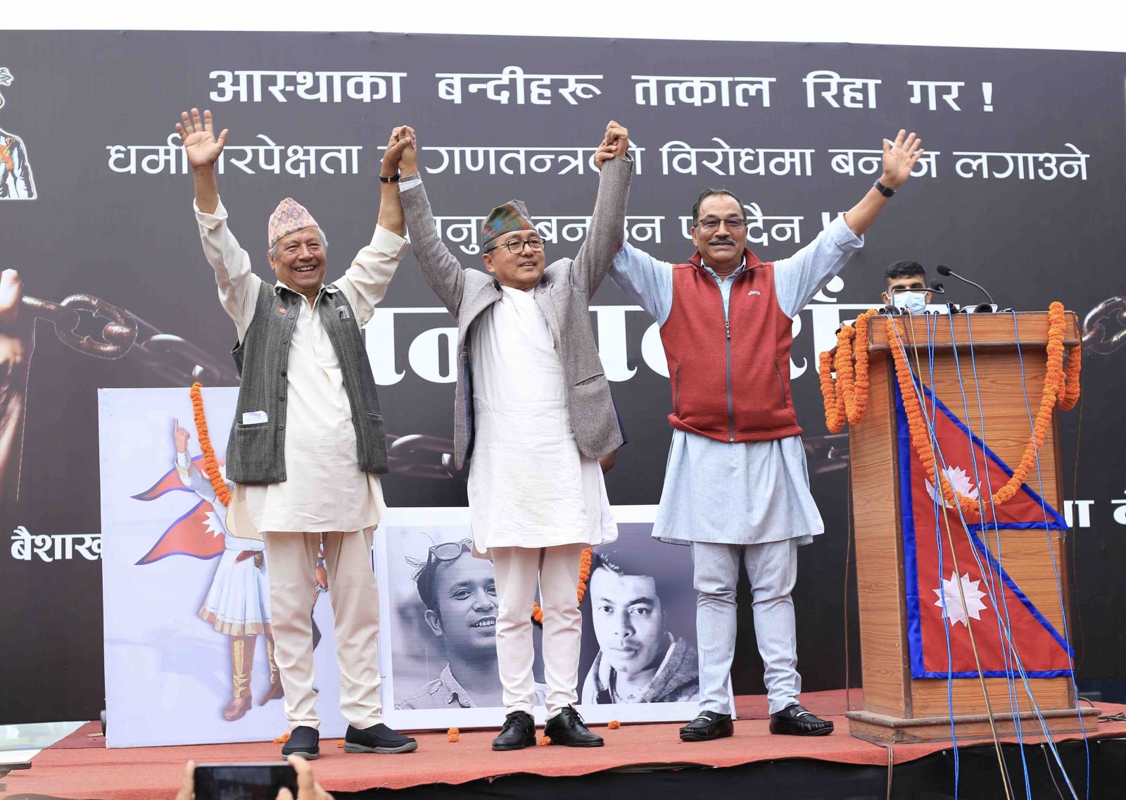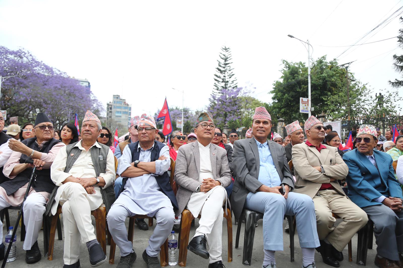 पूर्वपञ्च नवराज सुवेदीदेखि, केशरबहादुर विष्टसम्म, कमल थापादेखि राजेन्द्र लिङ्देनसम्म रत्नपार्कमा भेला भएर गणतन्त्र, संघीयता र धर्मनिरपेक्षतामाथि एकीकृत रूपमा धारेहात लगाए।
