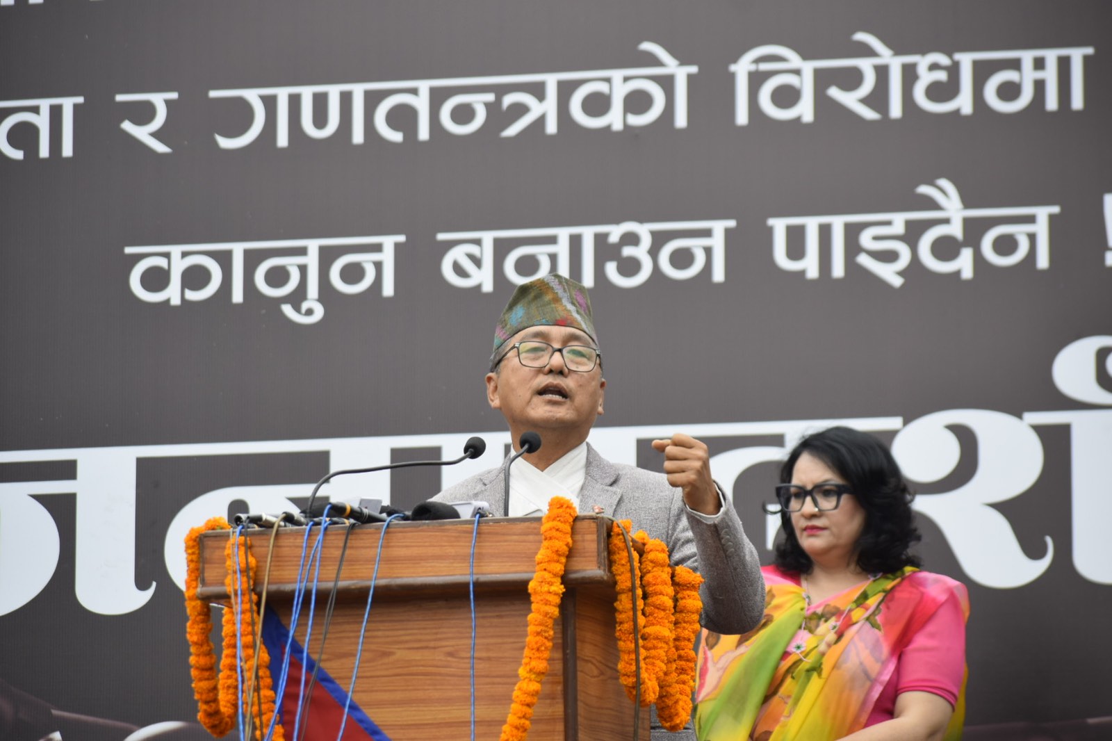 आफ्नै र सन्ततीको भविष्यसमेत अन्योलग्रस्त बनेकाले अस्मिताको रक्षाका लागि सबै देशभक्त राष्ट्रवादी शक्ति एक ठाउँमा आउन जरुरी रहेको उनले बताए।
