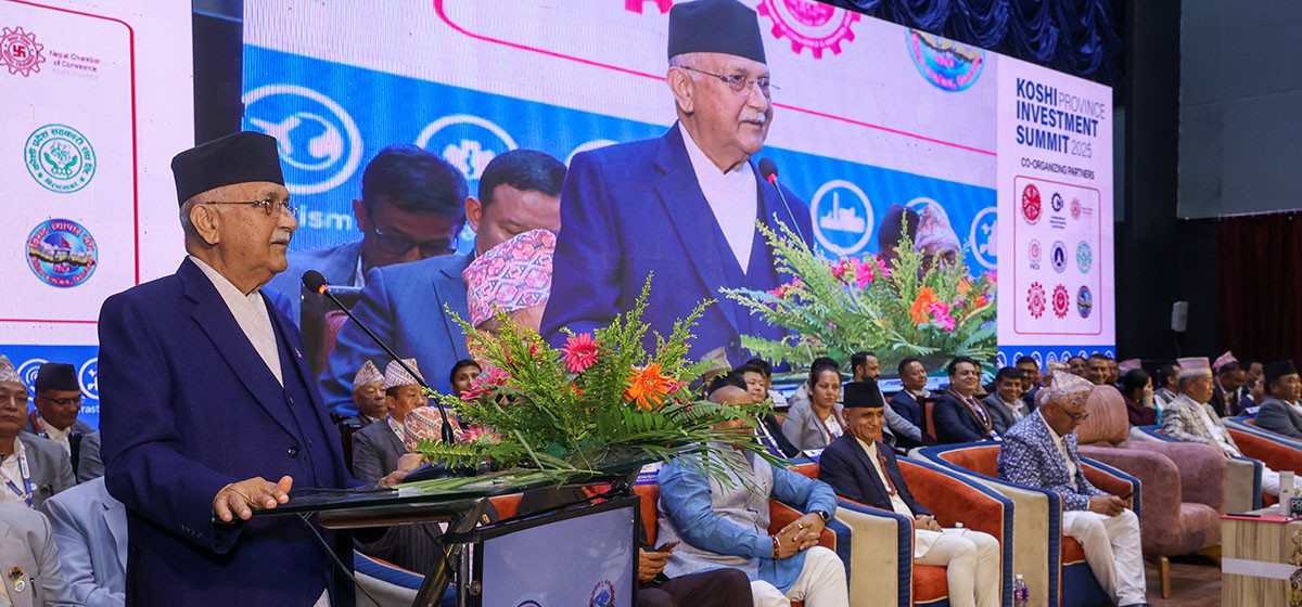 कोशी प्रदेश सरकारद्वारा आयोजित कोशी लगानी सम्मेलन, २०८२ को आज उद्घाटन गर्दै प्रधानमन्त्री ओलीले अनेक हिसाबले जुनसुकै क्षेत्रमा नेपालमा लगानीका निम्ति उपयुक्त वातावरण रहेकाले आन्तरिक र बाह्य लगानी परिचालनमा ध्यान दिन प्रशासनिक क्षेत्रलाई पनि आग्रह गरे।