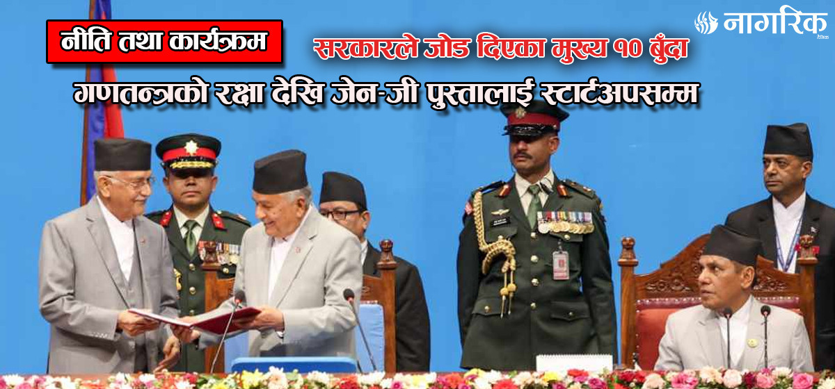 यस्तै सार्वजनिक नीति तथा कार्यक्रममा सरकारले मुख्य १० बुँदामा जोड दिएको जनाएको छ।