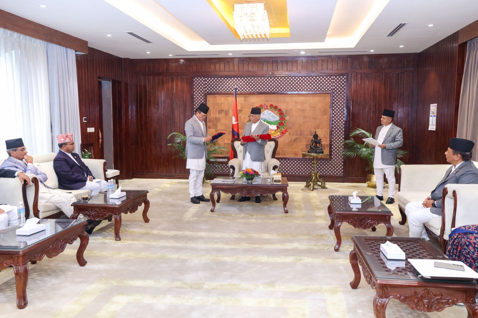 प्रधानमन्त्री केपी शर्मा ओलीसमक्ष नवनियुक्त ऊर्जा, जलस्रोत तथा सिँचाइ राज्यमन्त्री खमबहादुर गर्बुजाले आज पद तथा गोपनीयताको शपथ लिएका छन्।