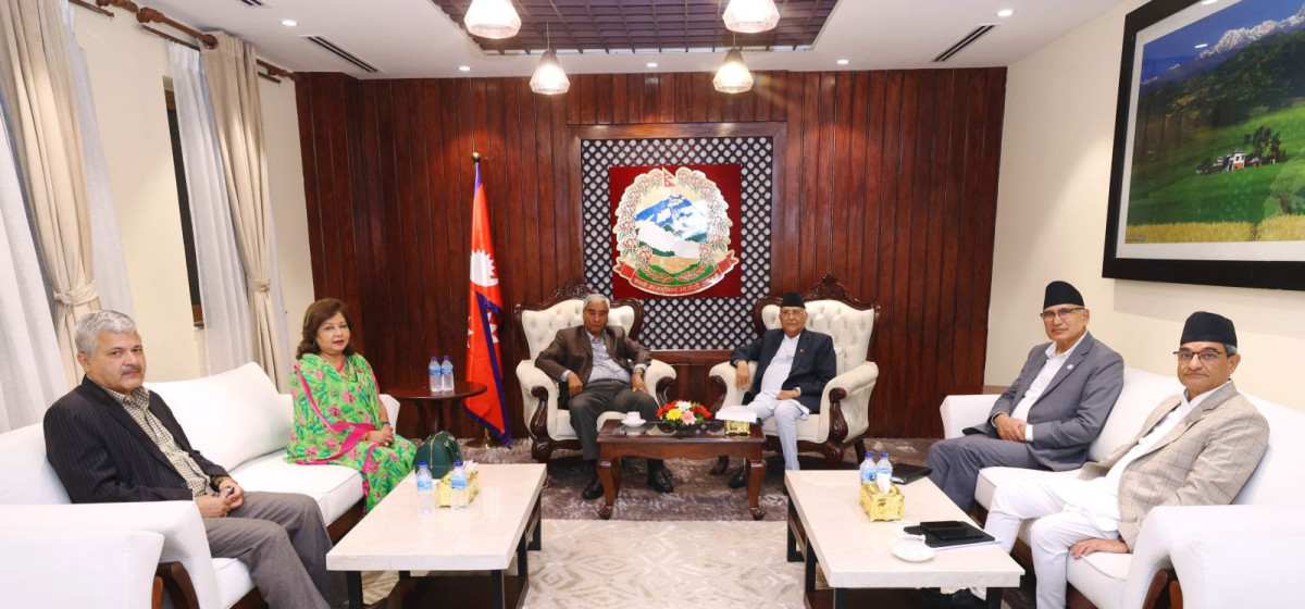 प्रधानमन्त्री केपी शर्मा ओलीसहित सत्तारुढ दुई दलका शीर्ष नेताहरूबीच बालुवाटारमा छलफल जारी छ। प्रधानमन्त्रीको सचिवालयका अनुसार समसामयिक राजनीतिक विषयमा छलफल भइरहेको हो।